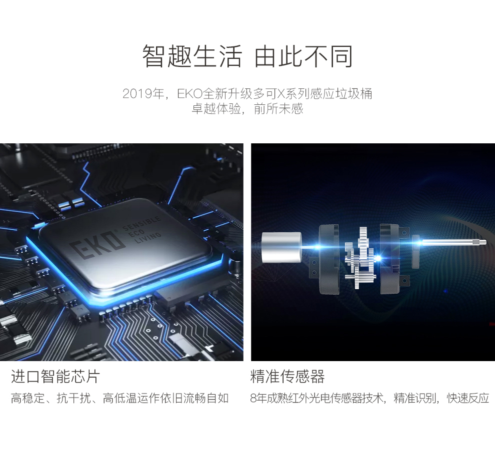 EKO智能垃圾桶自动感应开盖垃圾桶 亚光白 EK9286RP-MW-9L