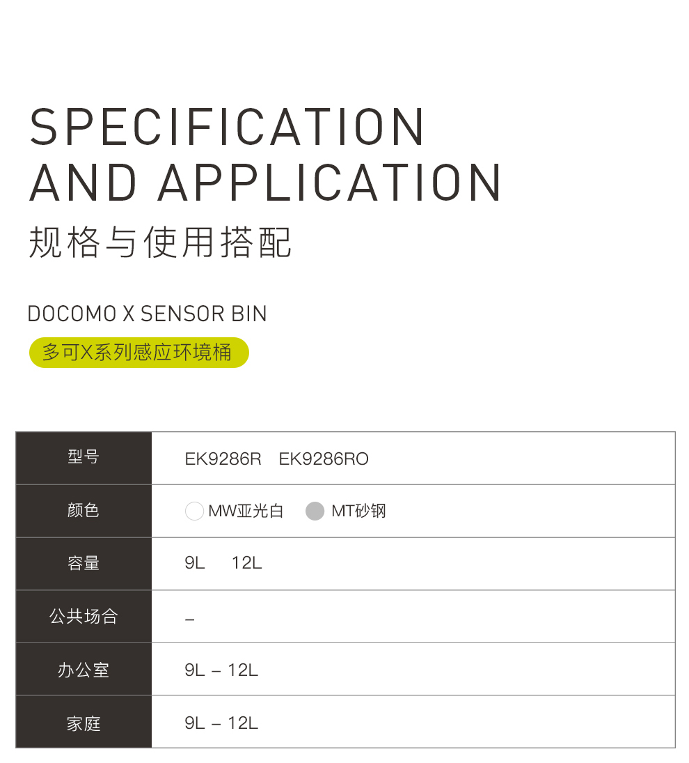 商品名称:EKO智能垃圾桶自动感应开盖垃圾桶 亚光白 EK9286RP-MW-12L