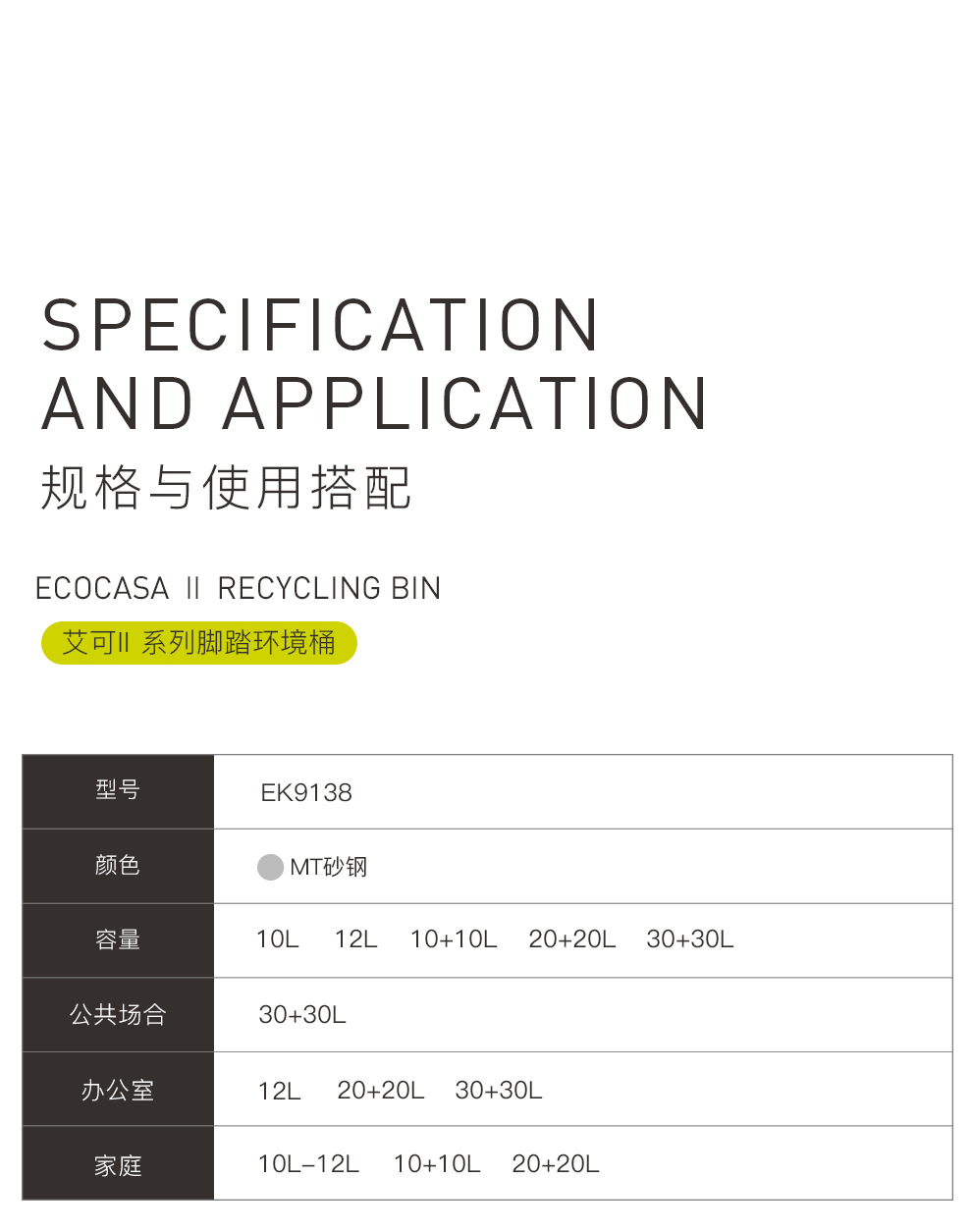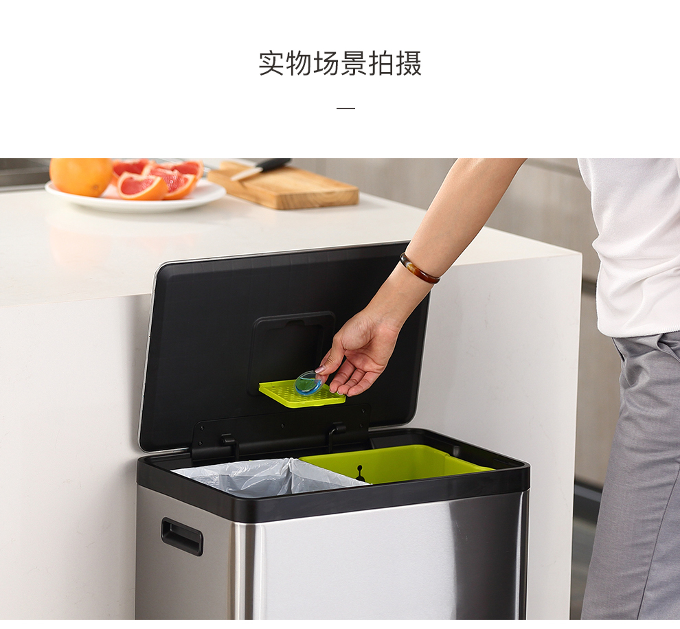 商品名称:EKO分类垃圾桶脚踩开盖垃圾桶 砂钢 双桶 EK9138MT-30L+30L