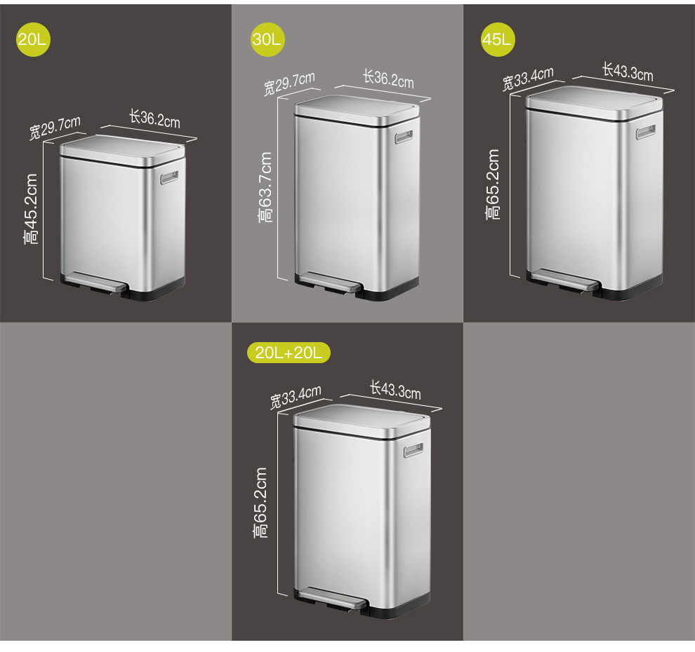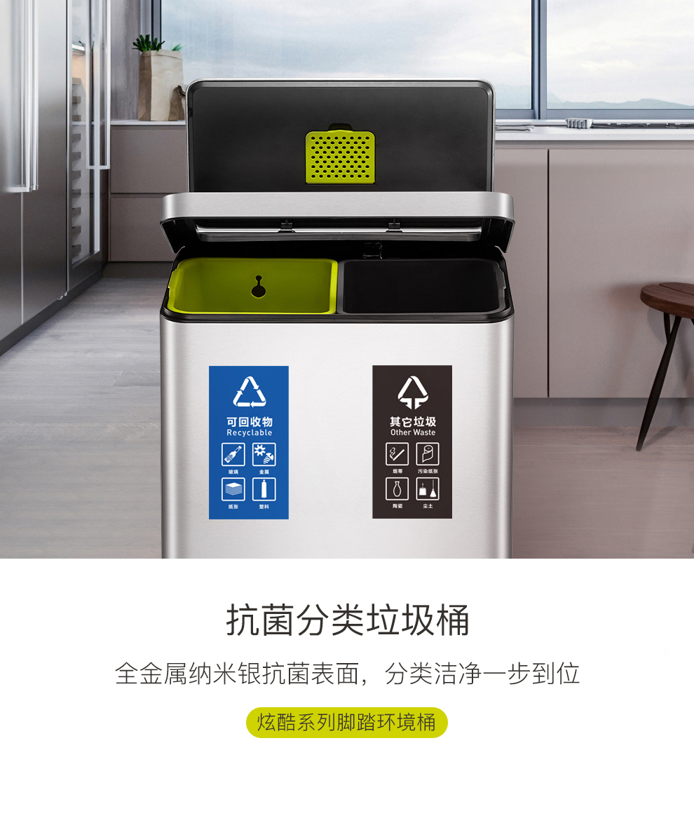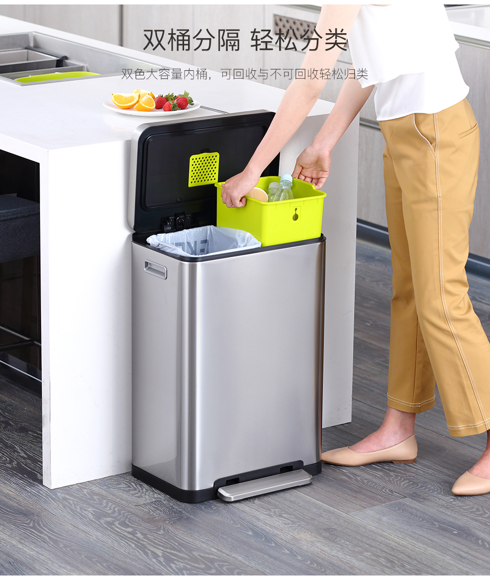 EKO分类垃圾桶脚踩开盖 砂钢 单桶 EK9138MT-20L