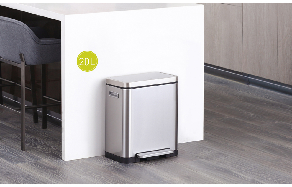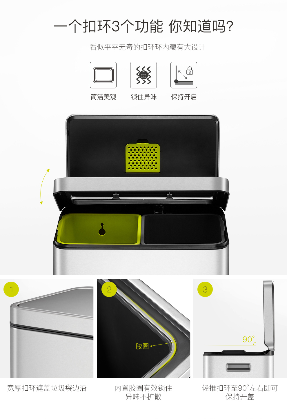 商品名称:EKO垃圾桶脚踩开盖垃圾桶 砂钢 EK9368MT-30L