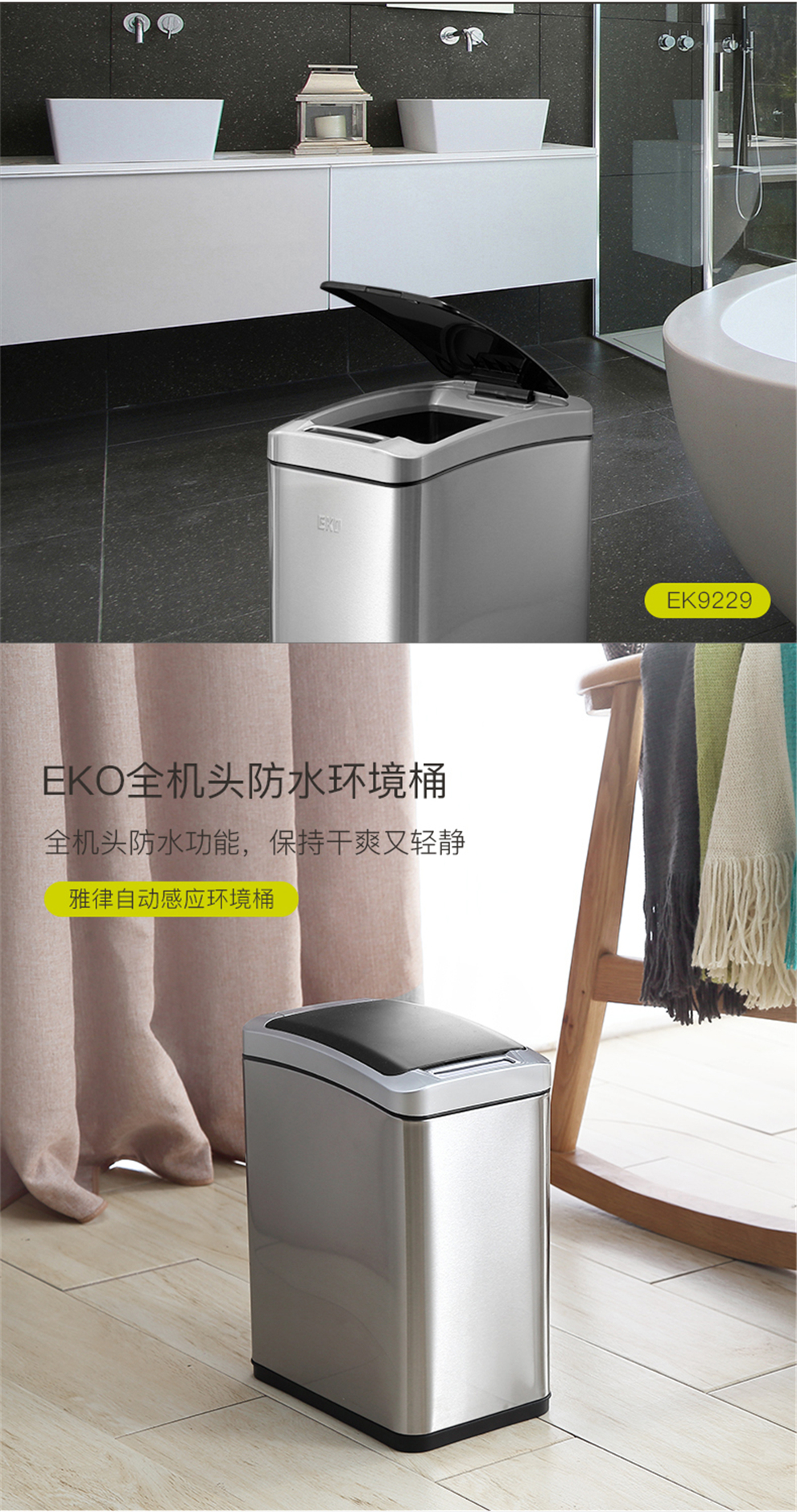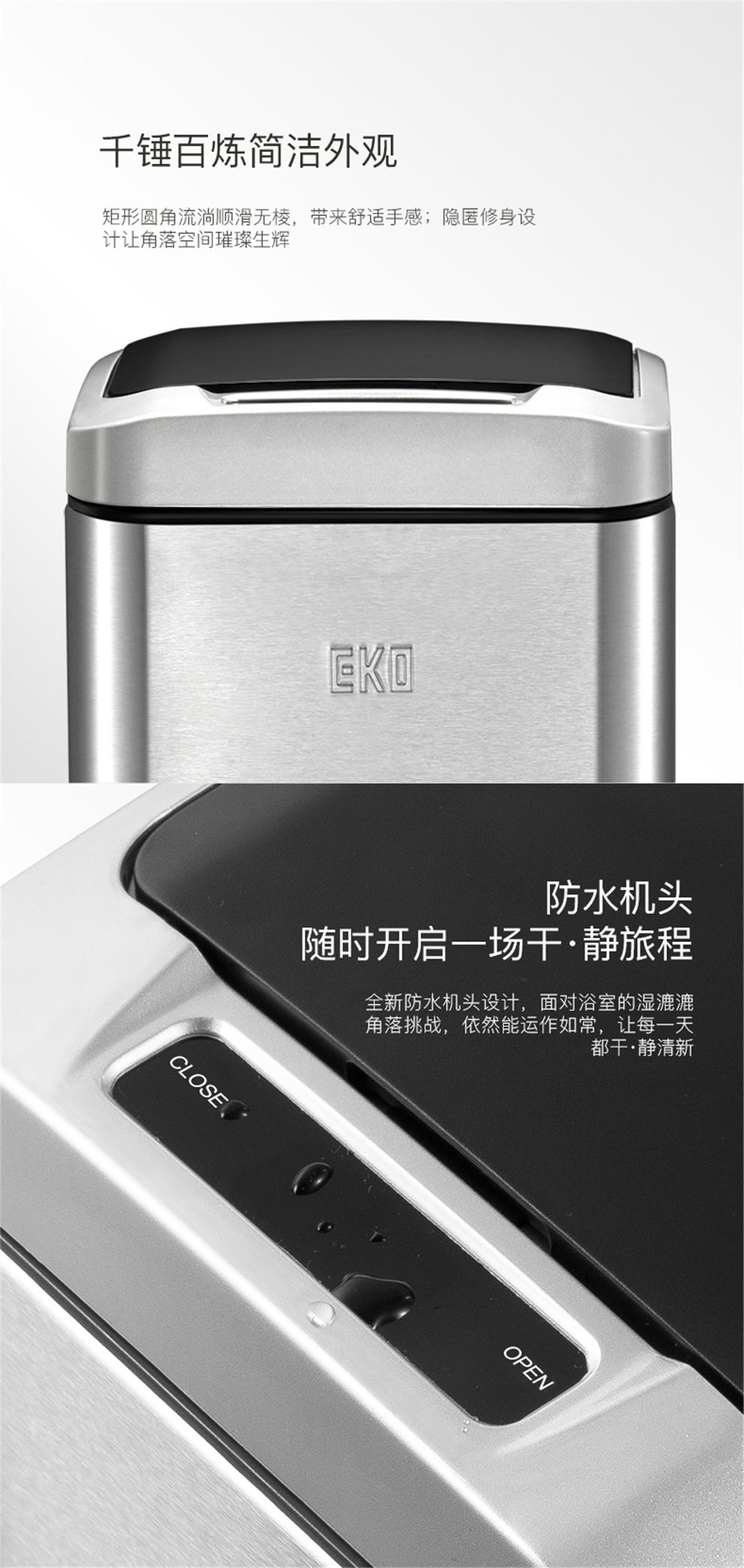 EKO智能垃圾桶自动感应开盖办公室 砂钢 EK9229MT-8L