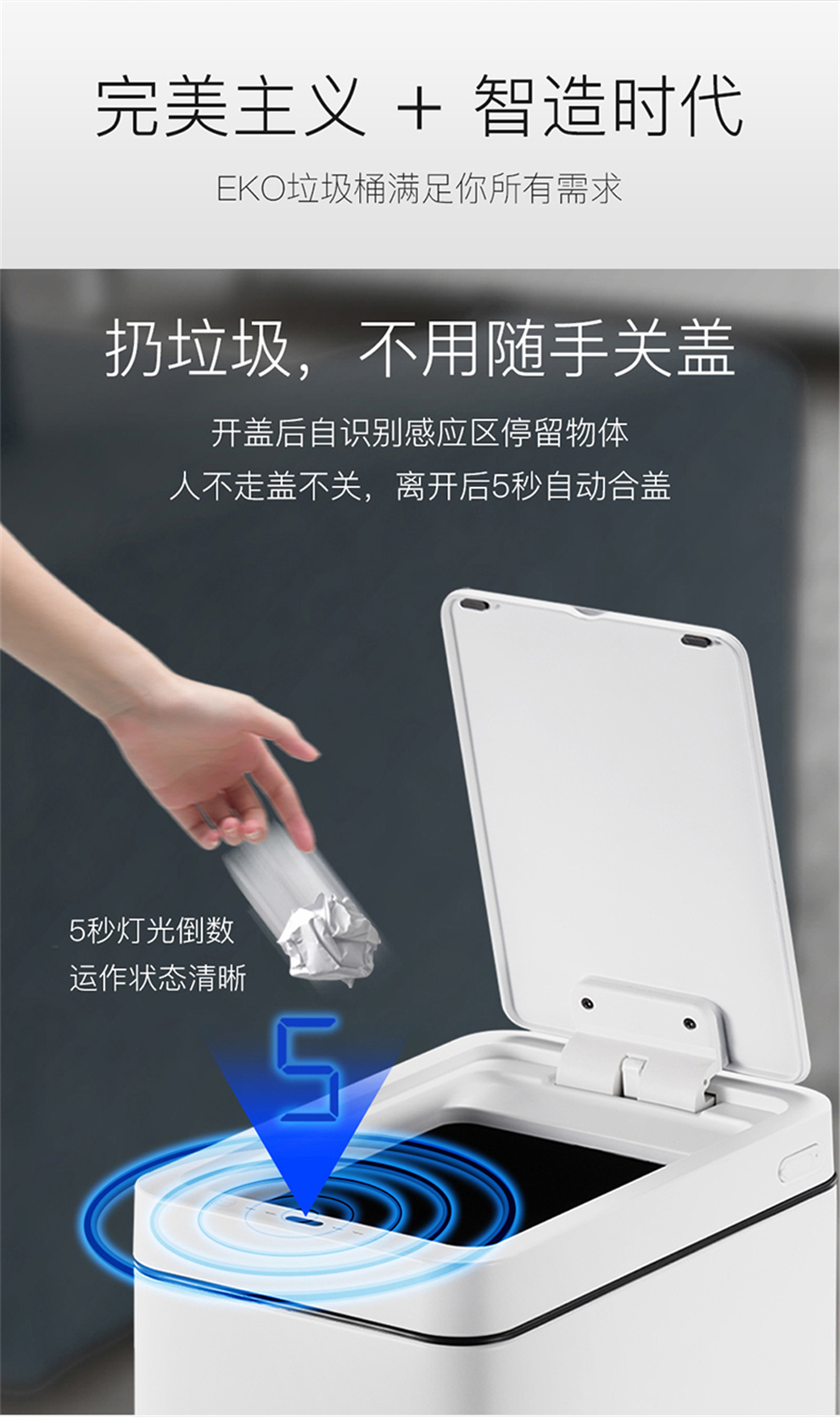 商品名称:EKO智能垃圾桶自动感应开盖 古铜金 EK9229P-BC-8L
