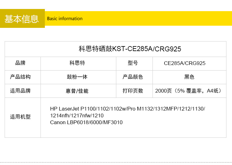 商品名称:科思特CE285A硒鼓 适用惠普M1212 M1214nfh M1130 P1100 P1102 佳能CRG925 专业版