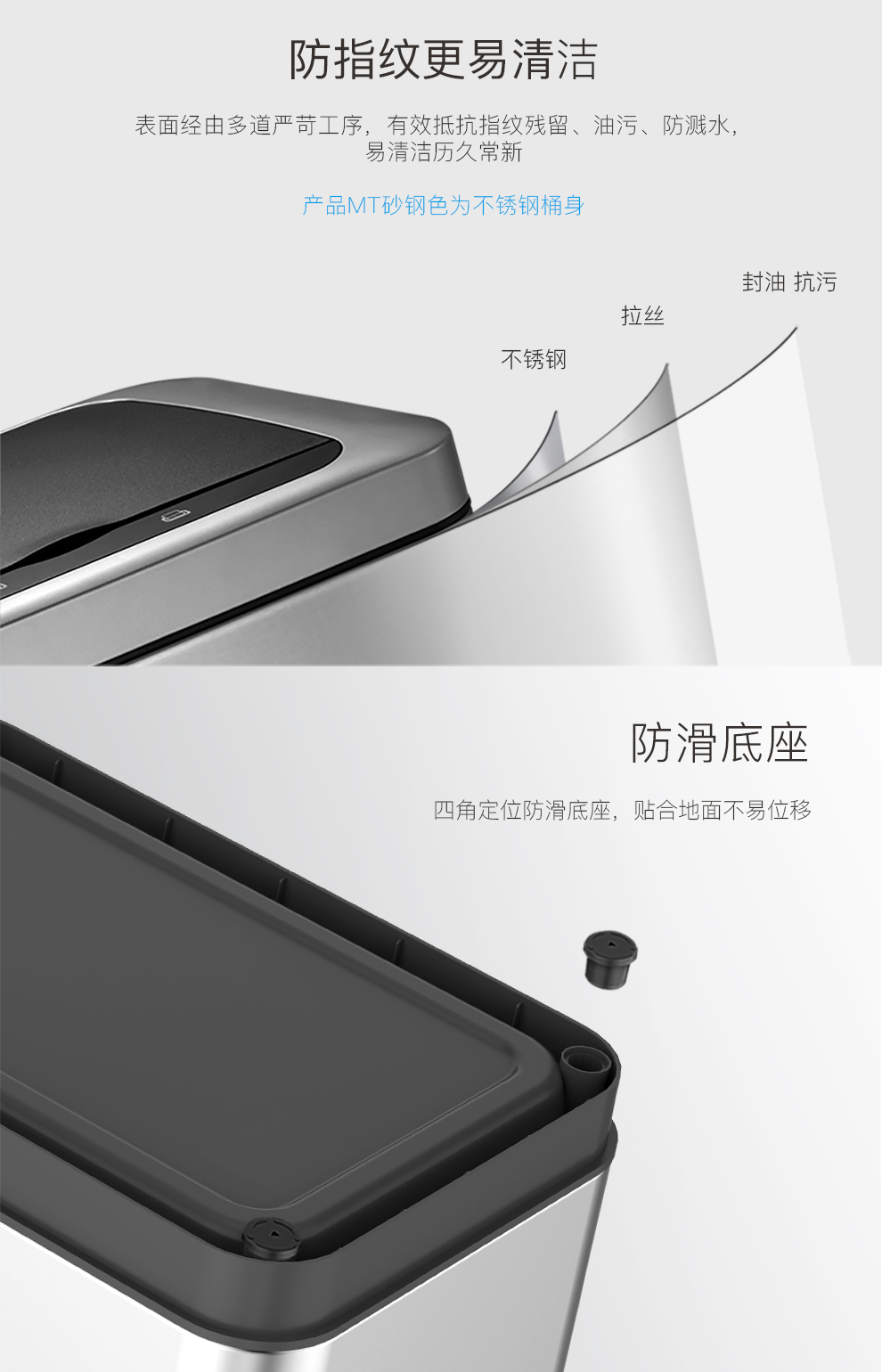 EKO智能垃圾桶自动感应开盖 砂钢 EK9260RMT-10L+10L