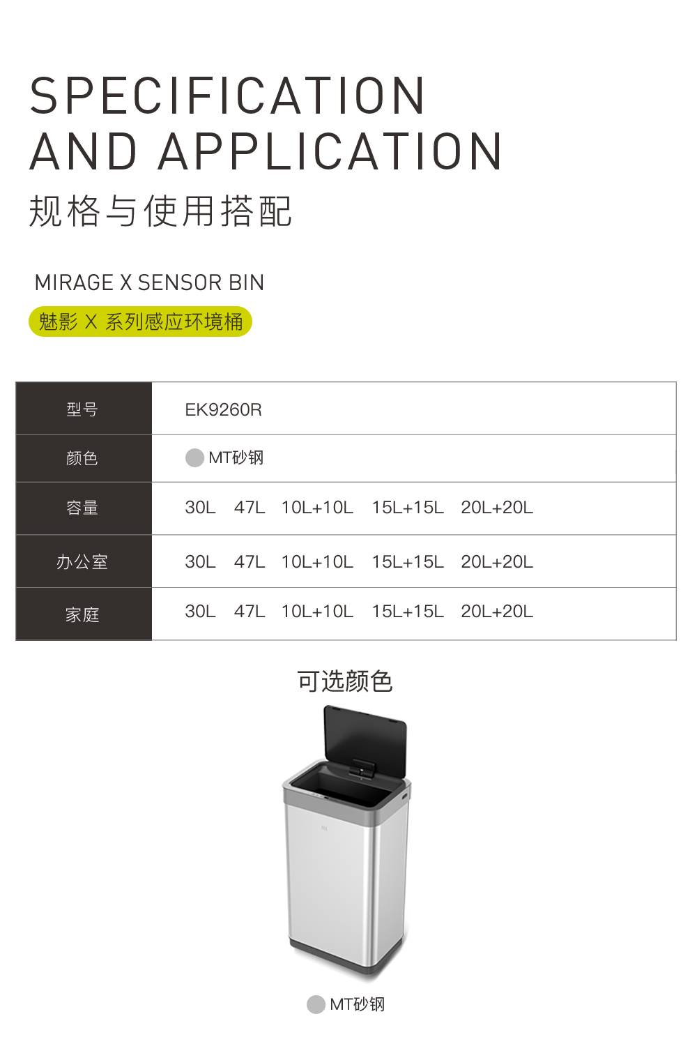 商品名称:EKO智能垃圾桶自动感应开盖 砂钢 EK9260RMT-15L+15L