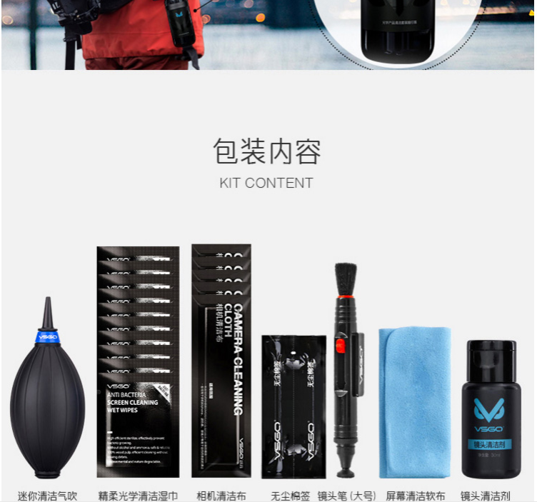商品名称:相机镜头清洁套装 微单单反相机清洁组套 数码产品清洁套装 混色随机
