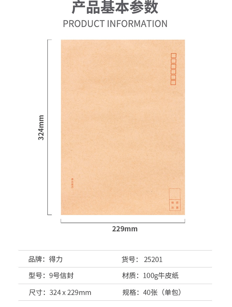 商品名称:得力25201牛皮信封(混)-9号(40个/包)