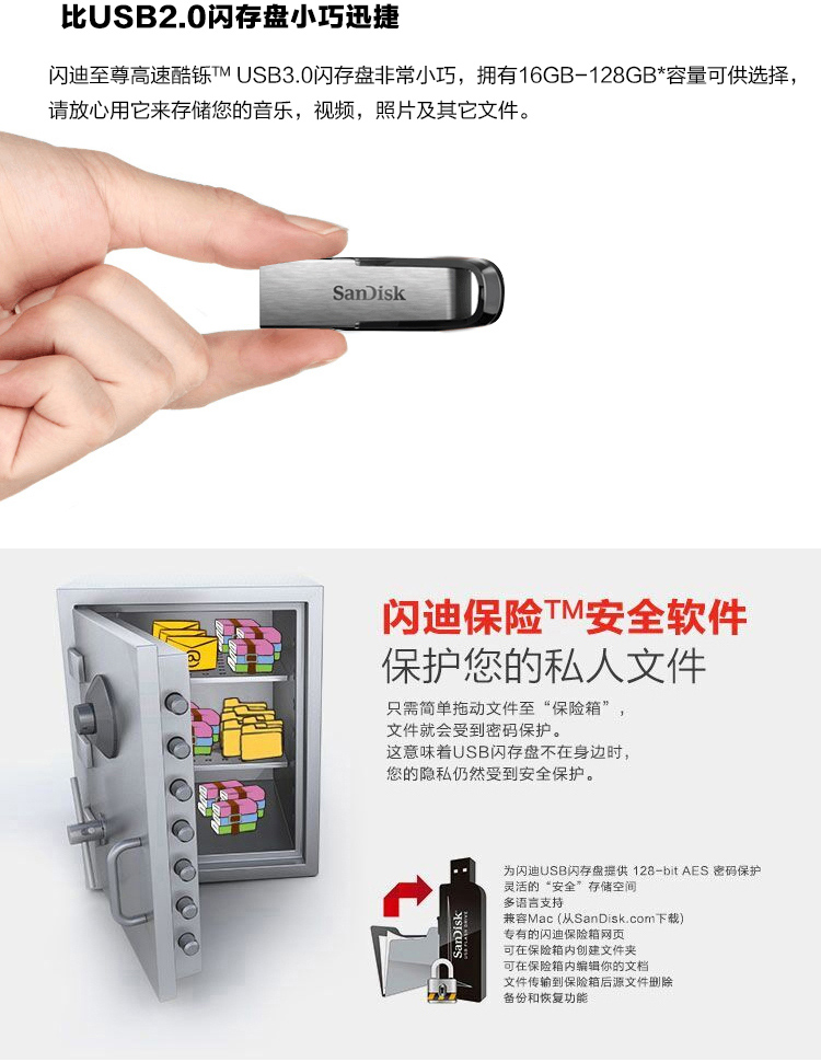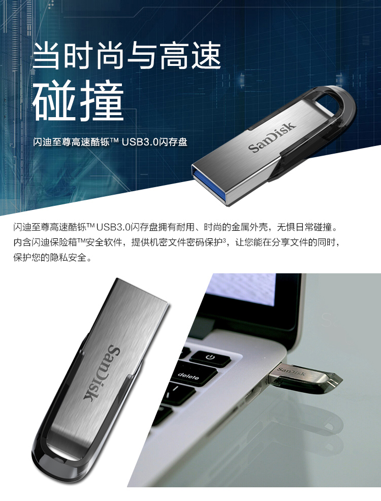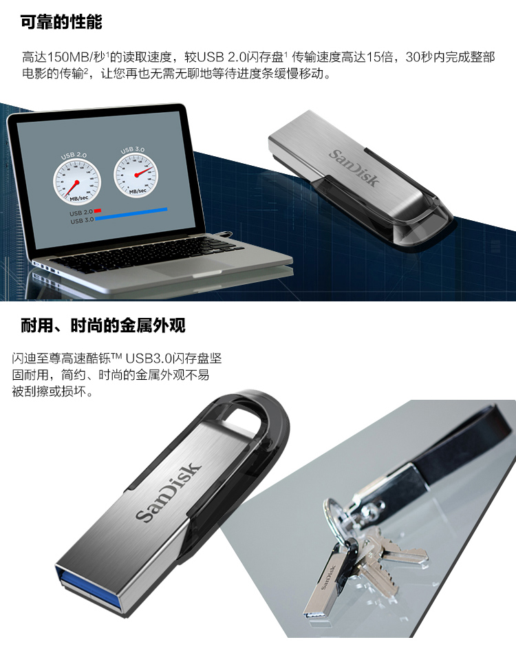 商品名称:闪迪(SanDisk)16GB USB3.0 U盘 CZ73银色 读速130MB/s 金属外壳