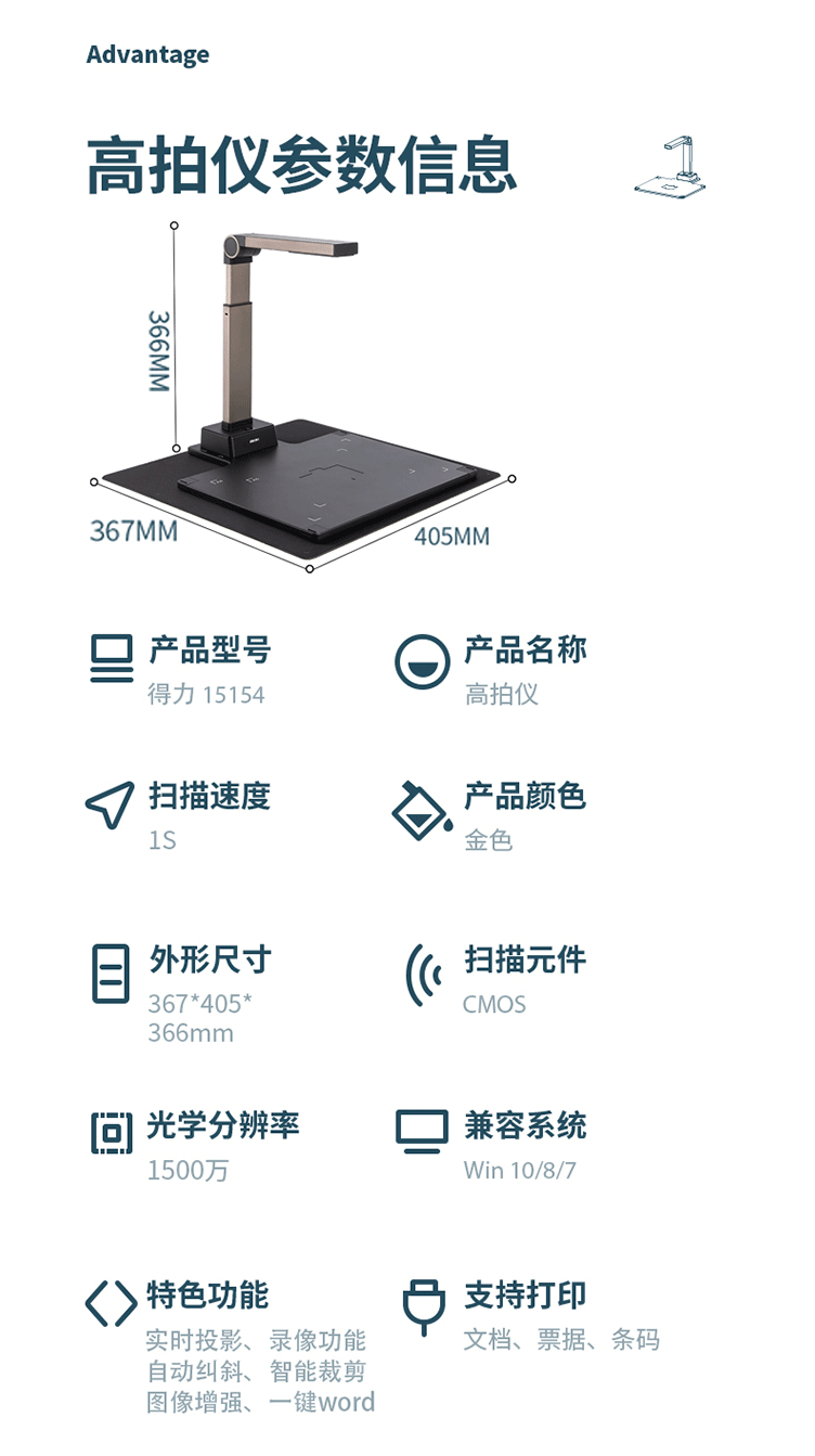 商品名称:得力15154高拍仪(金色)(台)