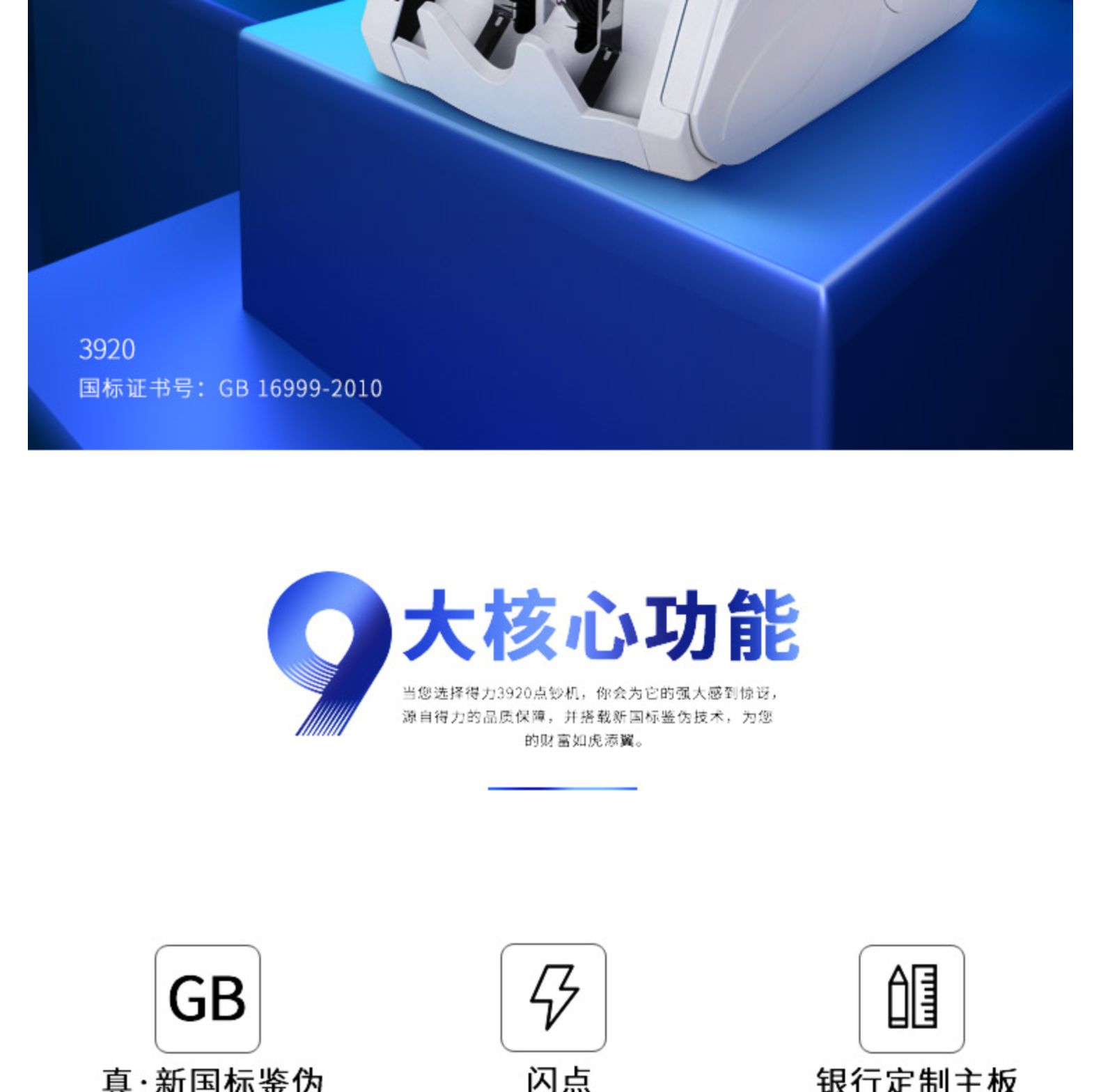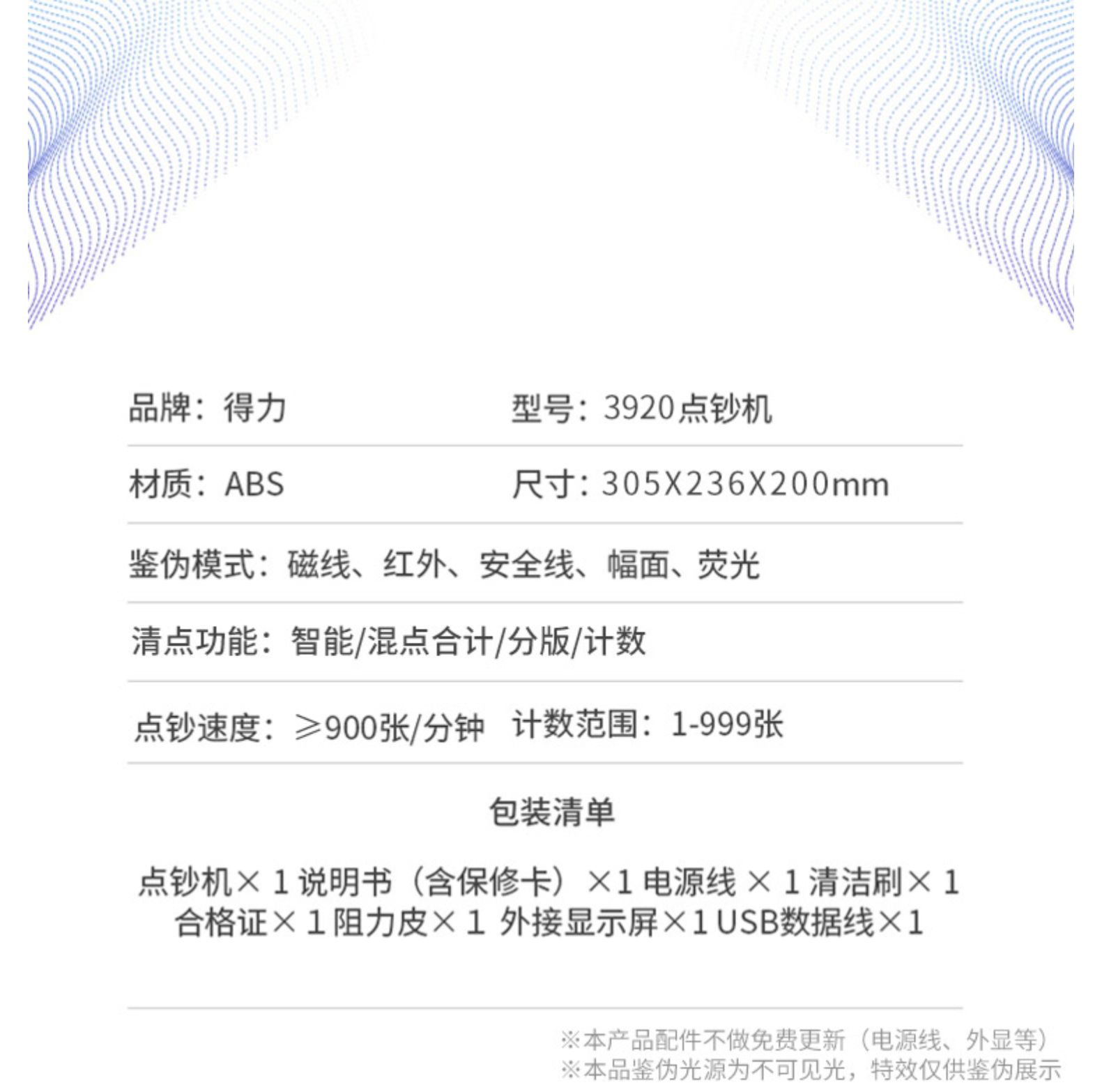 商品名称:得力3920S点钞机(白灰)(台)
