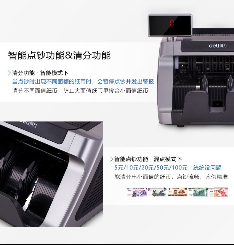 商品名称:得力T830S点钞机(银灰色)(台)