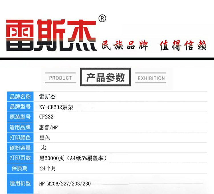商品名称:雷斯杰 KY-CF232 黑色硒鼓 适用惠普:HP M206/227/203/230