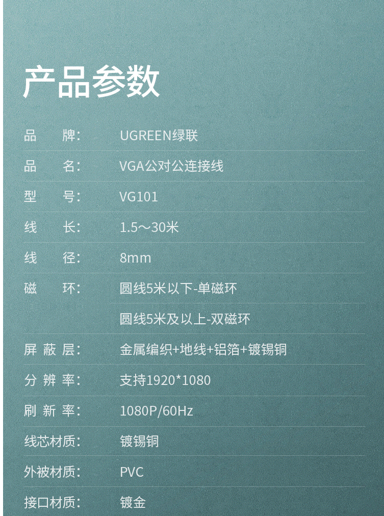 商品名称:绿联(UGREEN)工程级VGA线 高清视频转接线延长线 15米 11634