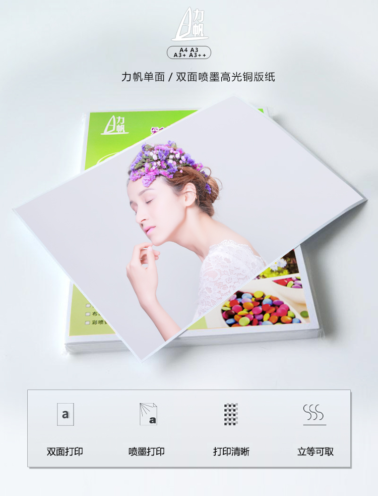 商品名称:力帆A4喷墨铜版纸 120g 50张/包