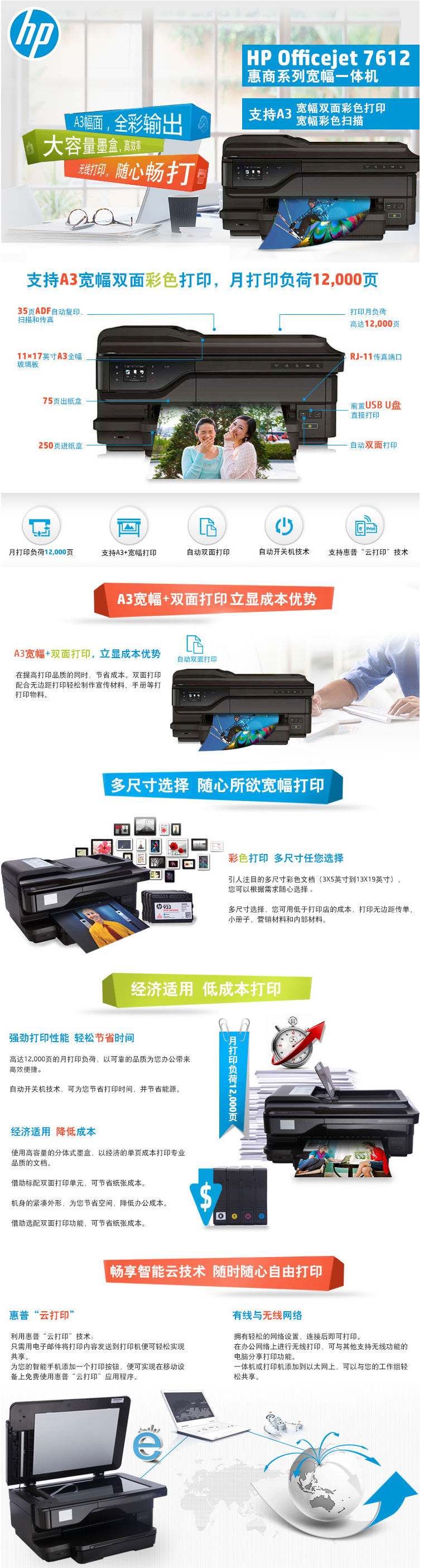 商品名称:惠普(HP)7612 A3宽幅多功能一体机四合一 打印复印扫描传真 无线连接 自动双面打印