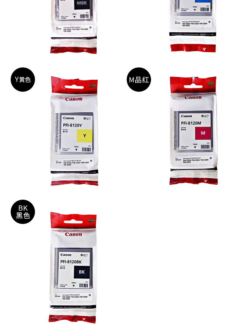 商品名称:佳能 (Canon) TM-5300/5305/5200/5205原装墨盒PFI-8120 (130ML)Y 黄色