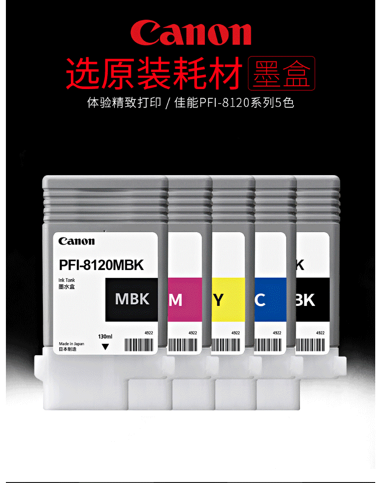 佳能 (Canon) TM-5300/5305/5200/5205原装墨盒PFI-8120 (130ML) MBK 粗面黑