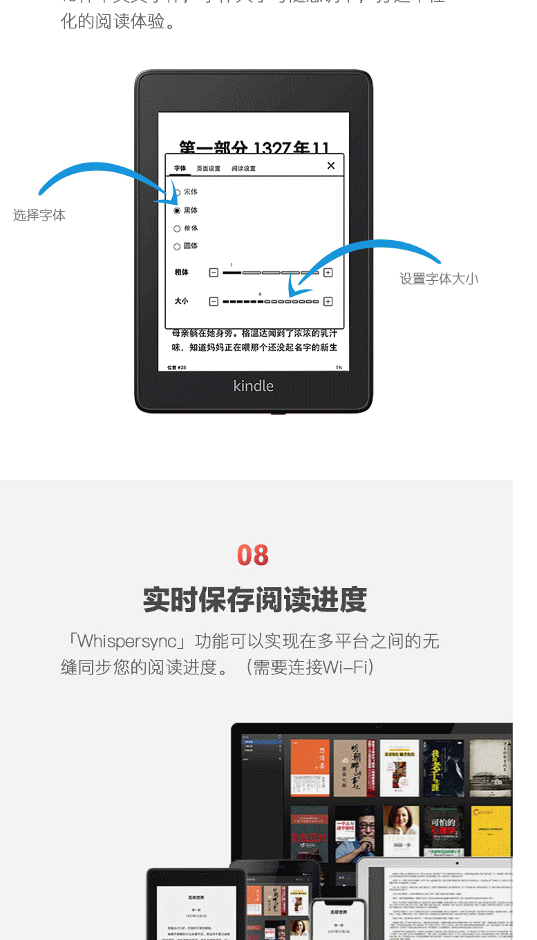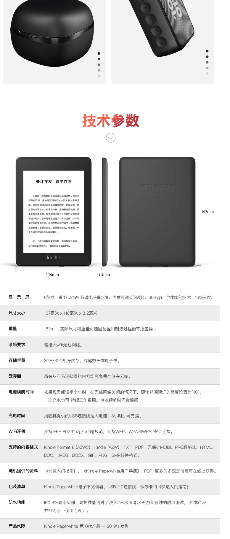 商品名称:Kindle paperwhite 全新 电子书阅读器 8G 墨黑色