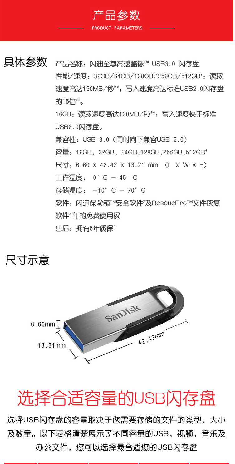 商品名称:闪迪 (SanDisk)128GB USB3.0 U盘 CZ73酷铄 银色