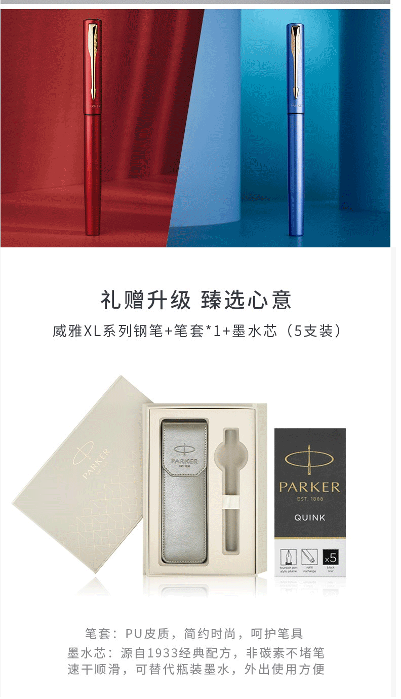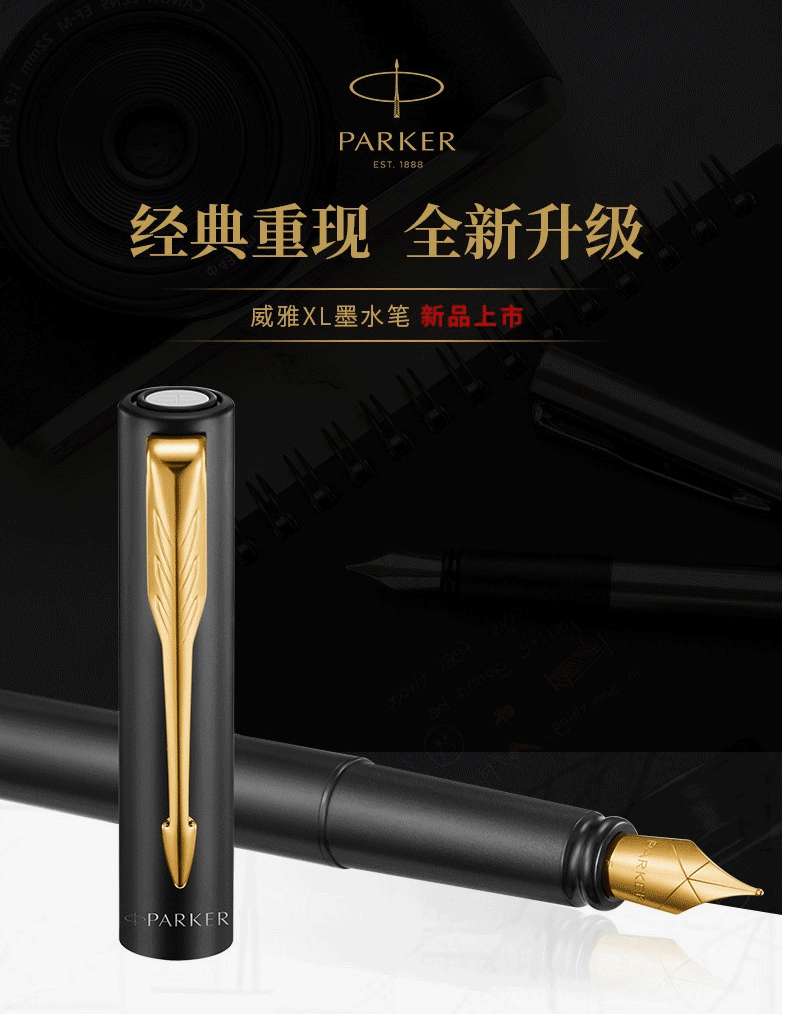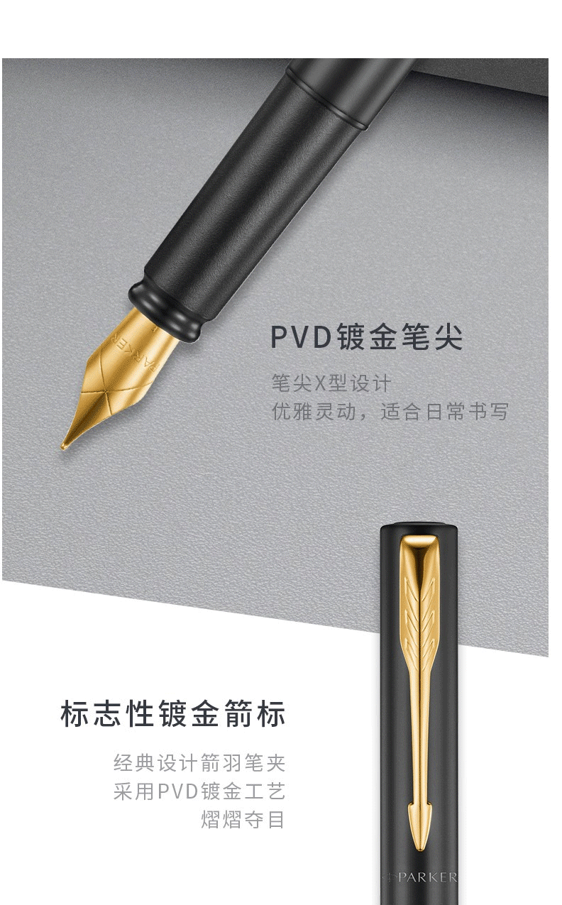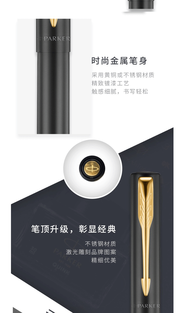 商品名称:派克钢笔(PARKER)威雅钢笔 钢杆金夹墨水笔(钢笔+笔套礼盒)