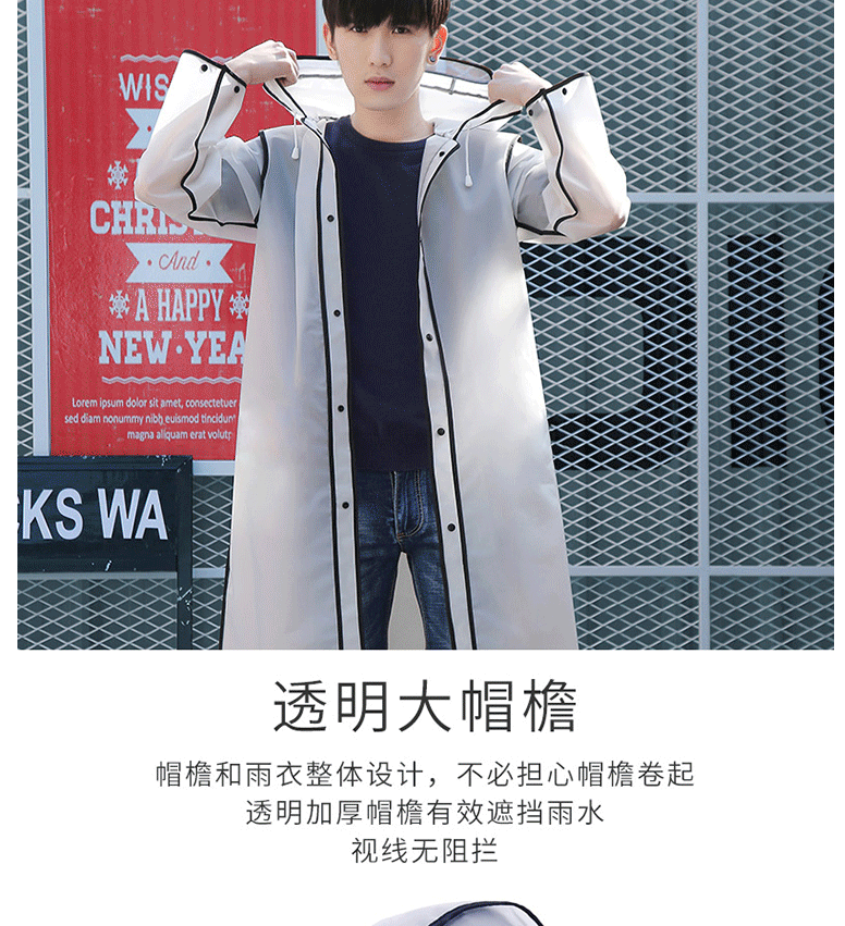 商品名称:户外雨衣 加厚EVA带帽檐防水雨披便携男女长款风衣式雨衣 XL码