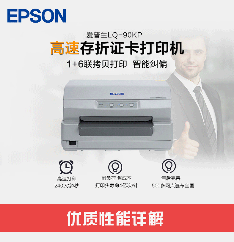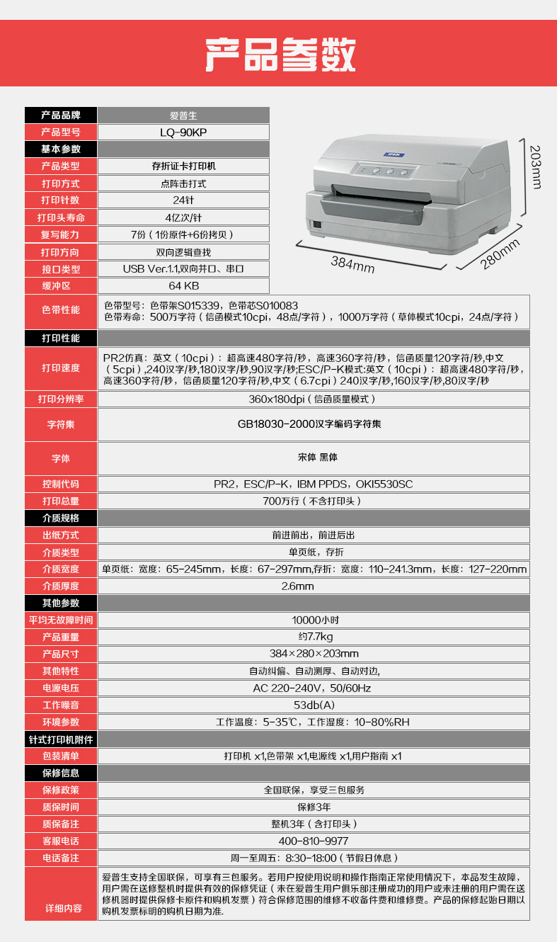 商品名称:爱普生(EPSON)LQ-90KP 存折证卡针式打印机 平推式
