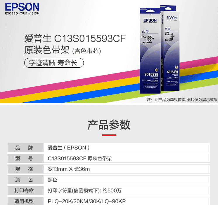 商品名称:爱普生(EPSON)C13S015593CF 原装色带架(含色带芯)(PLQ-20K/20KM/30K/LQ-90KP)
