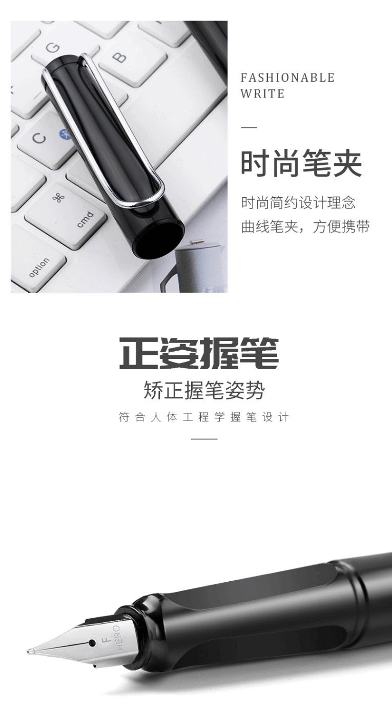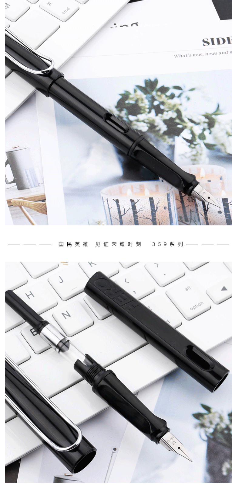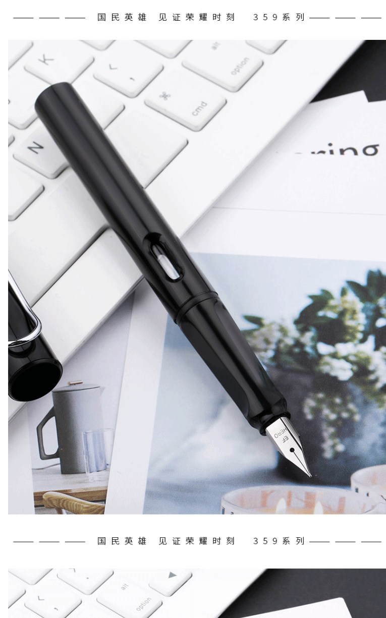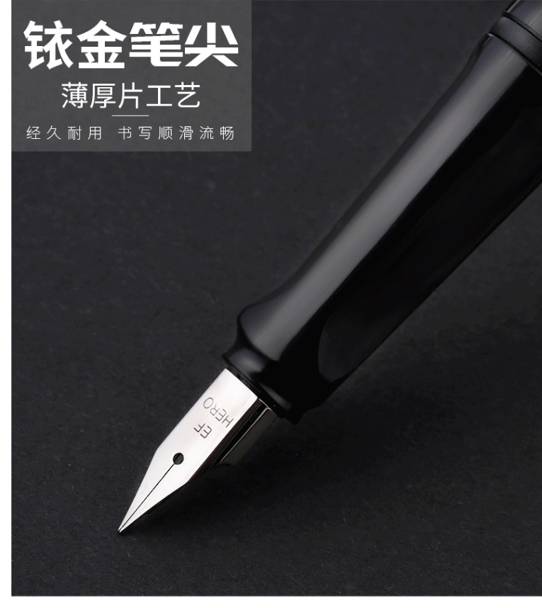 英雄(HERO)359 正姿 磨砂黑 F尖钢笔 带墨囊
