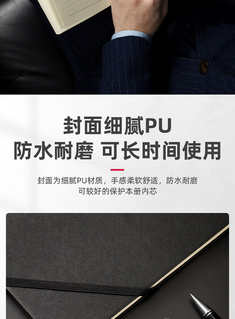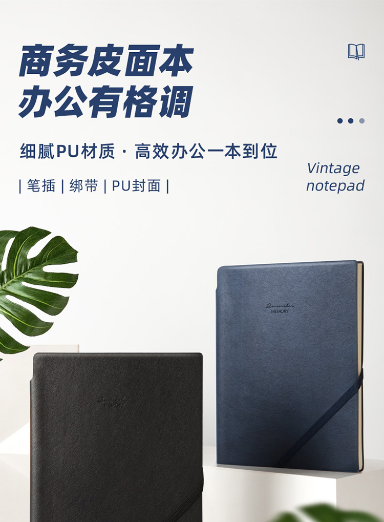 商品名称:得力22215商务插笔皮面本(深蓝)