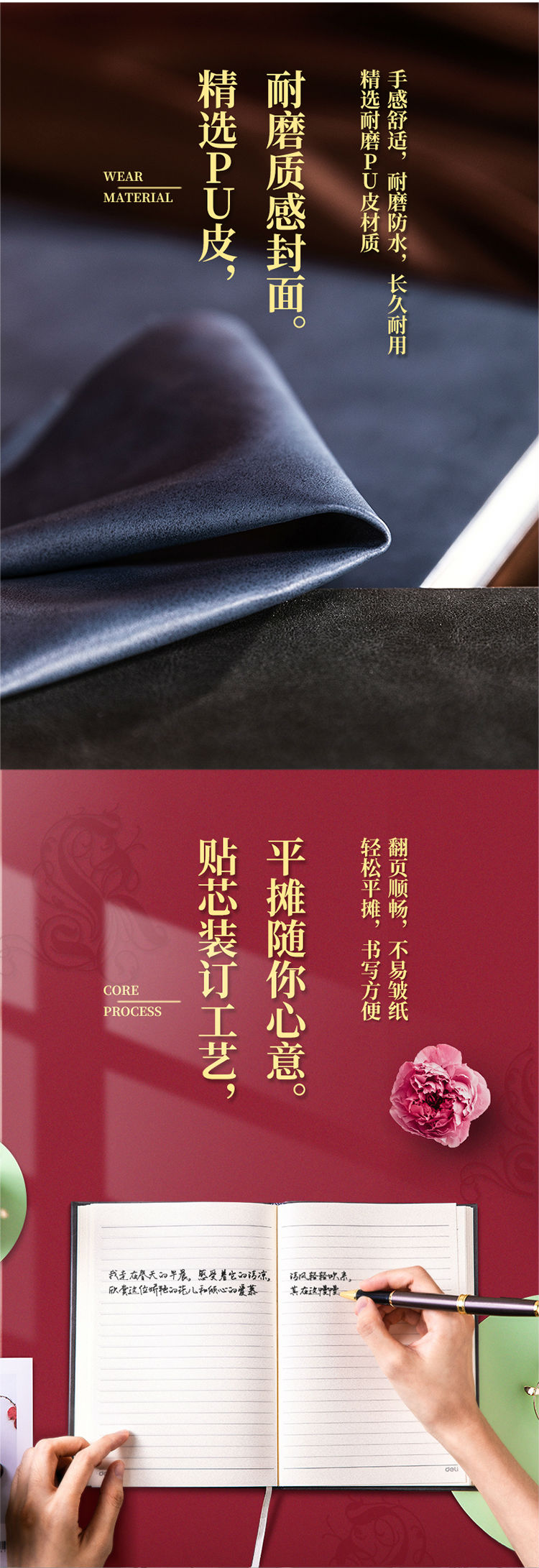 得力22289单包贴芯皮面本-A5-210mm*143mm/120张(黑)