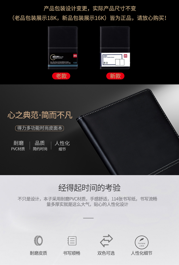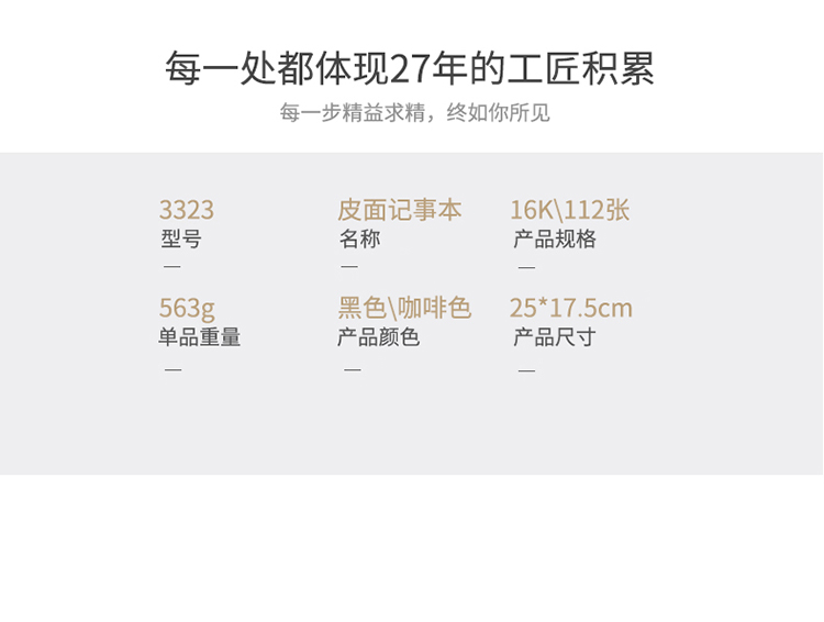 商品名称:得力3323商务记事本-16K-250*175mm-112张(棕)