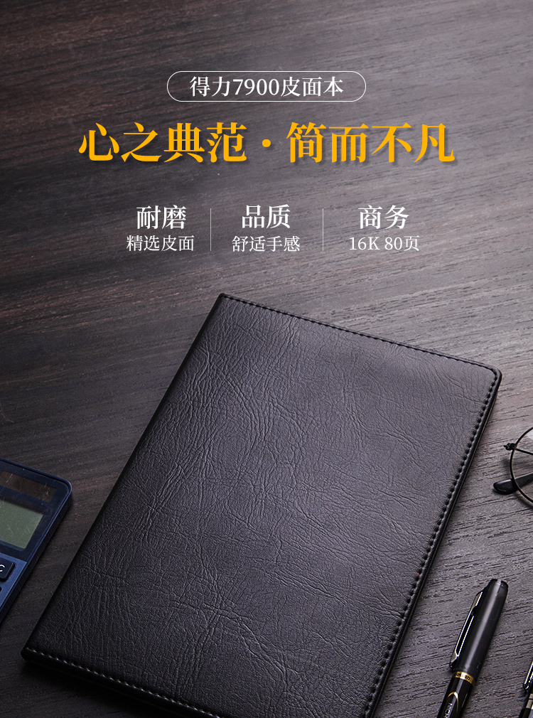 商品名称:得力7900皮面笔记本-16K-80张(黑)