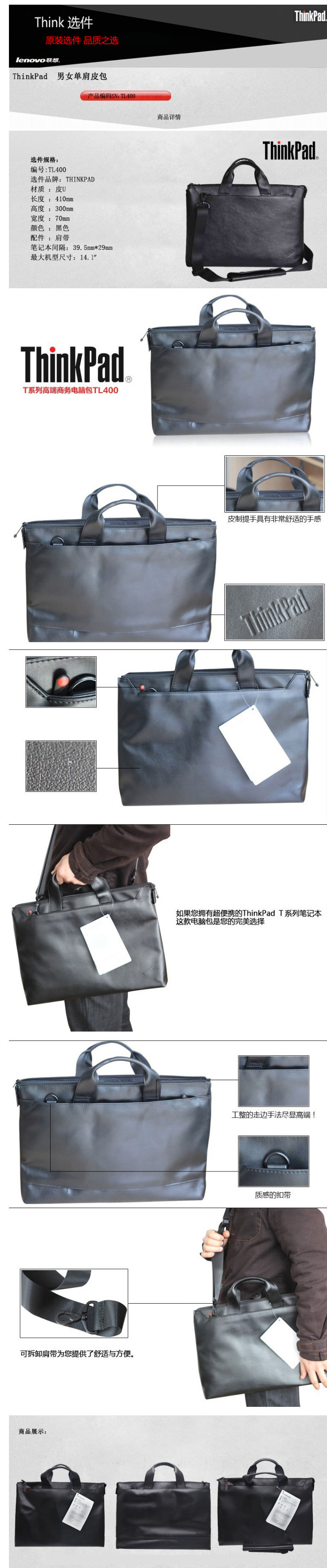 商品名称:联想(Lenovo) 14英寸电脑包TL400 4X40E50484