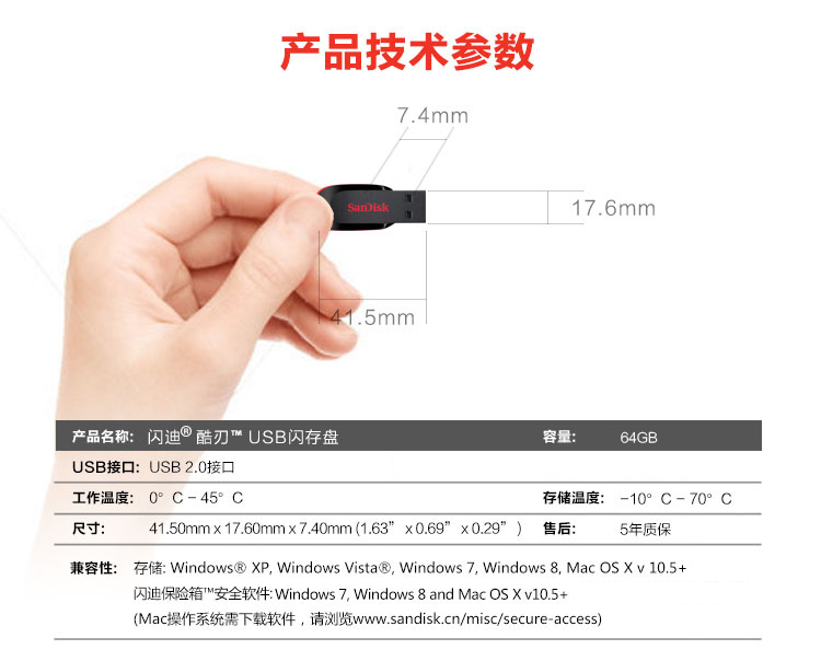 商品名称:闪迪(SanDisk)16GB USB2.0 U盘 CZ50酷刃 黑红色