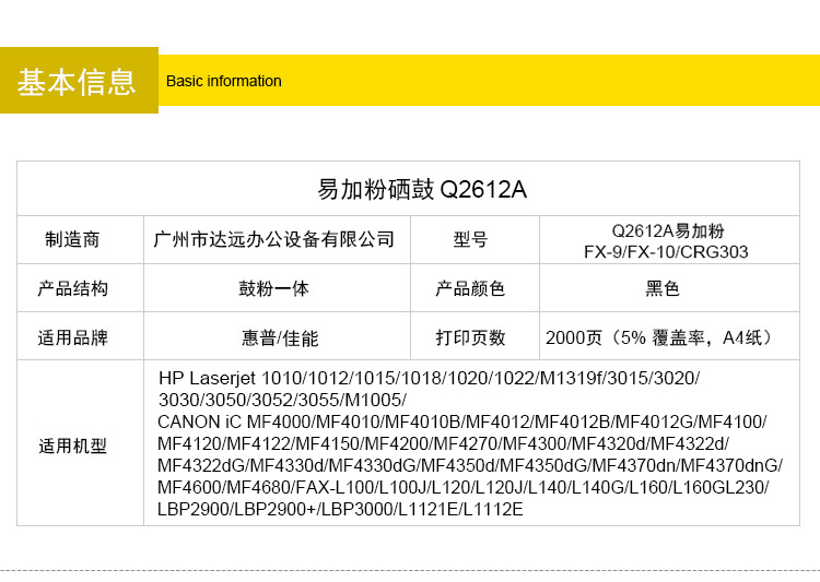 型号:J Q2612A/FX-9/FX-10/CRG303(易加粉版)