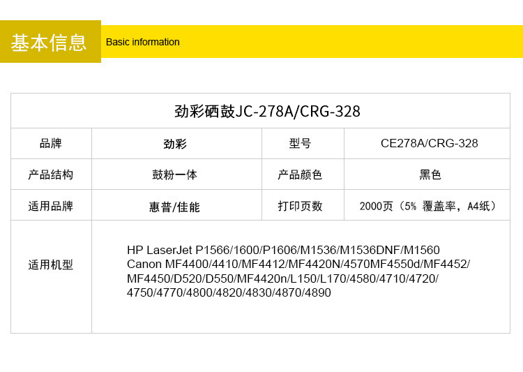 商品名称:劲彩CE278A硒鼓 适用惠普P1566 P1600 M1560 佳能CRG328 CRG326