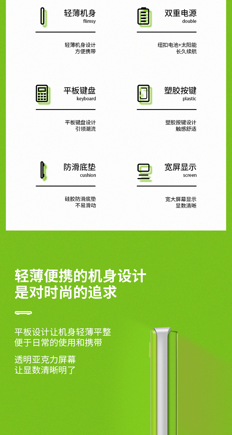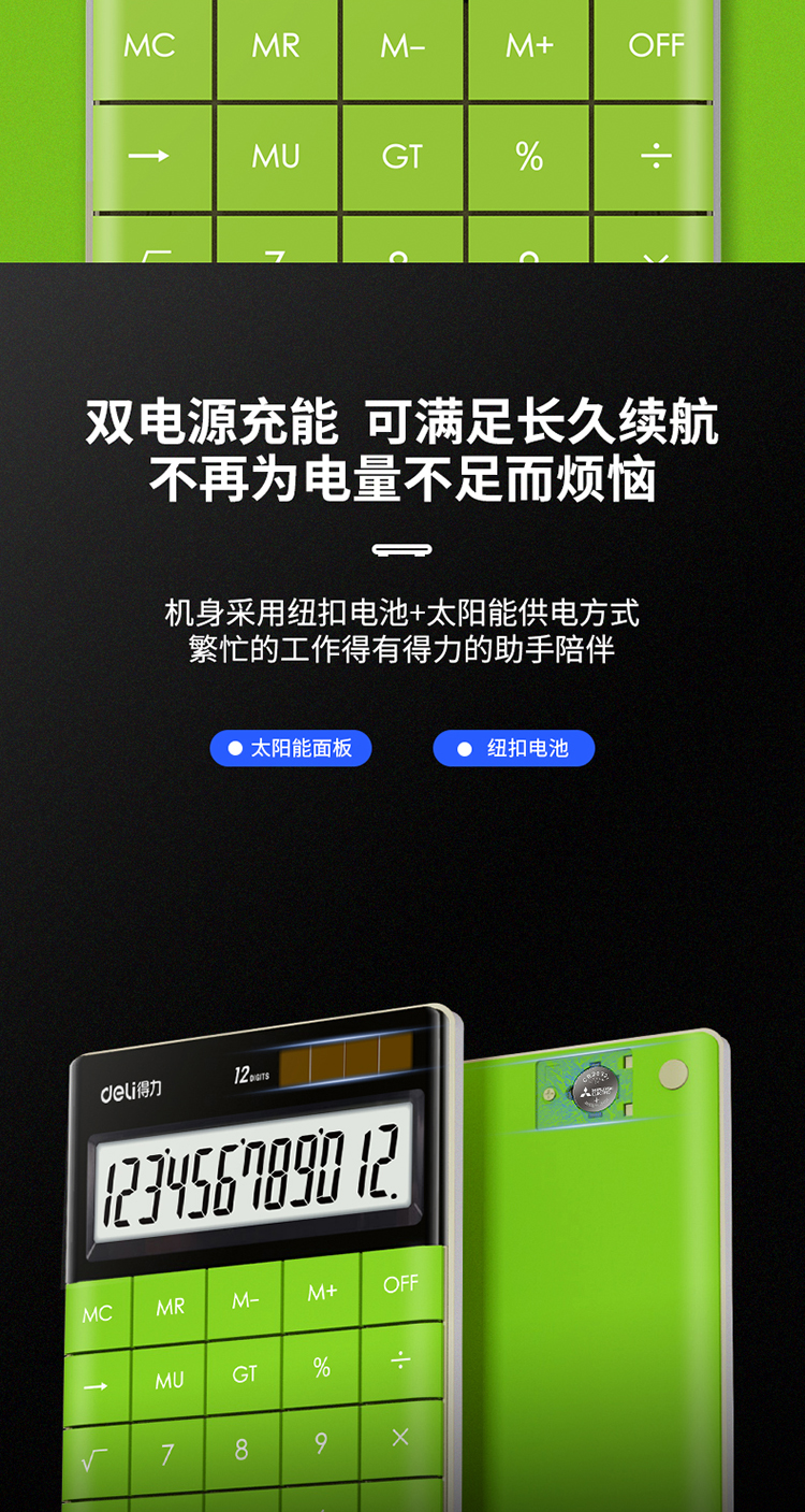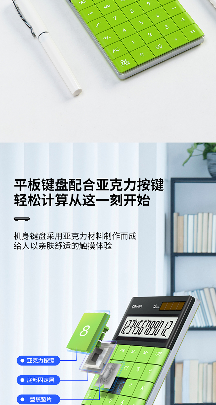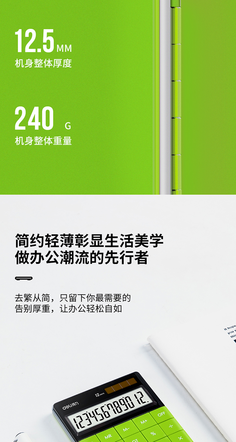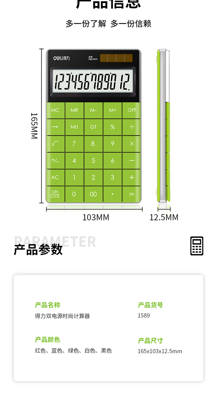 商品名称:得力1589桌面计算器(绿)