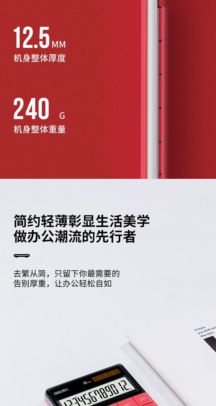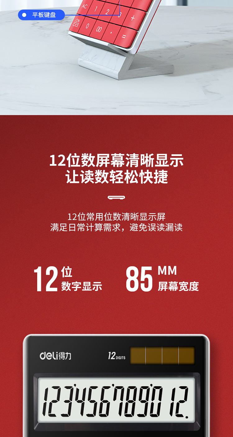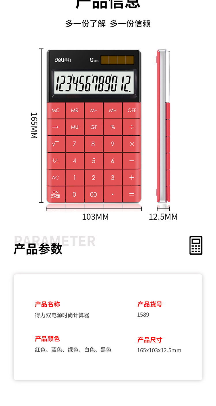 商品名称:得力1589桌面计算器(红)