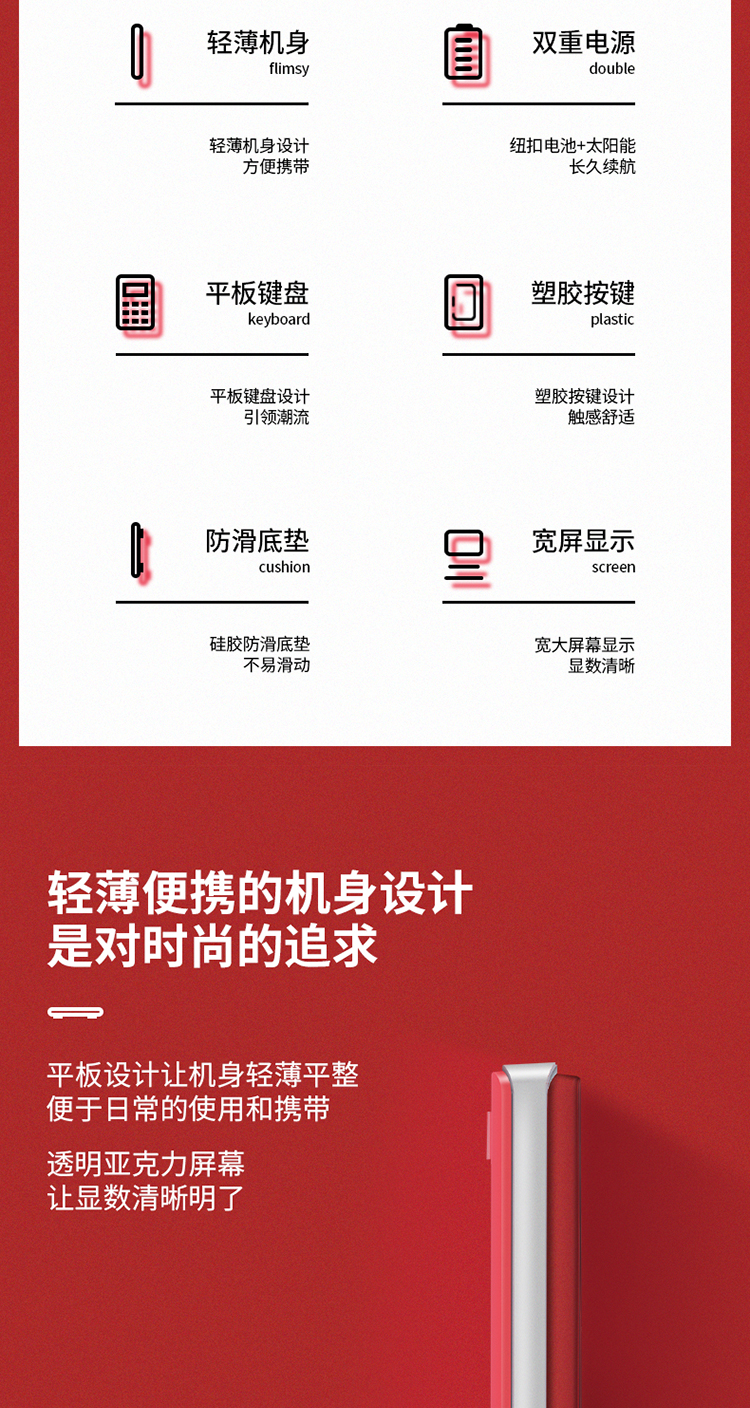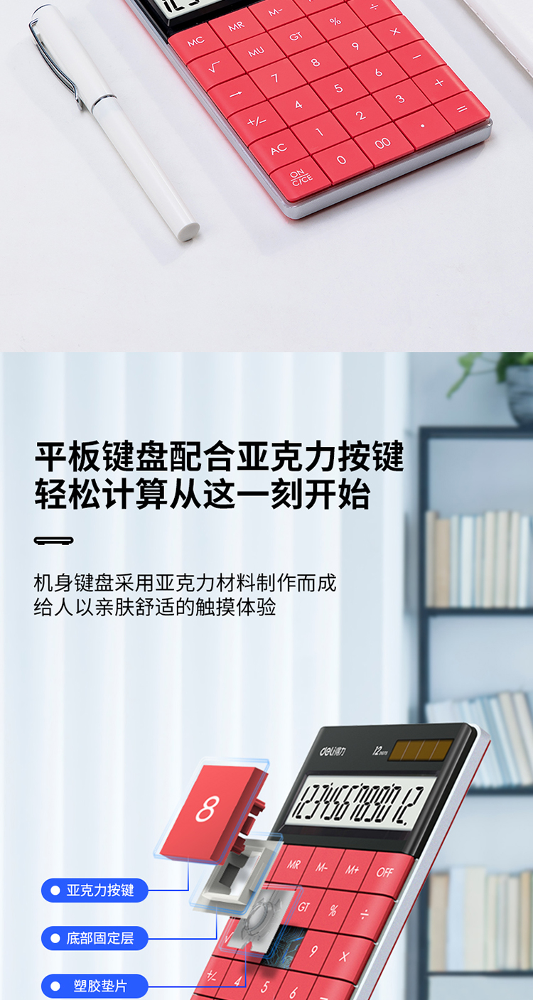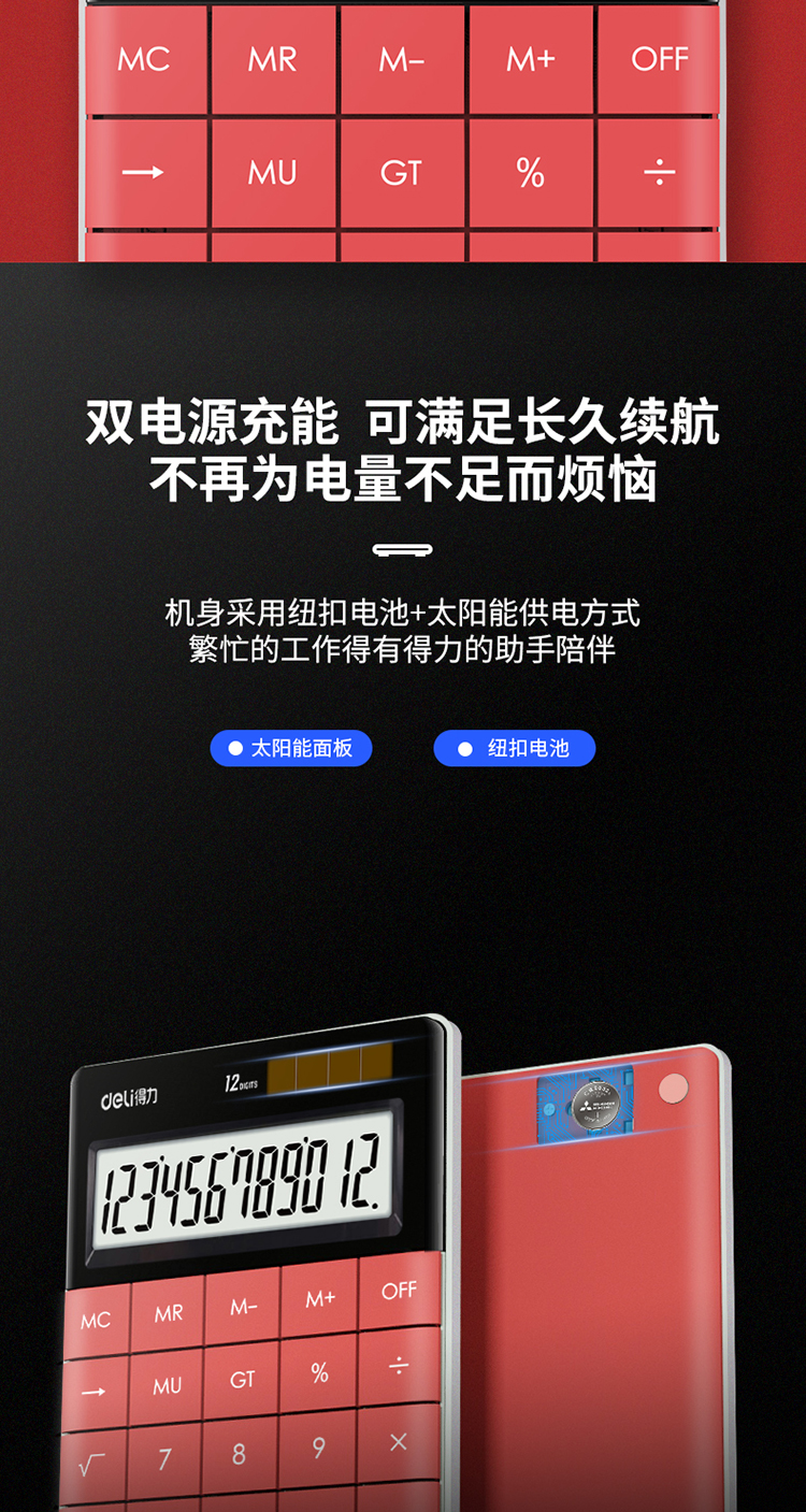 商品名称:得力1589桌面计算器(红)