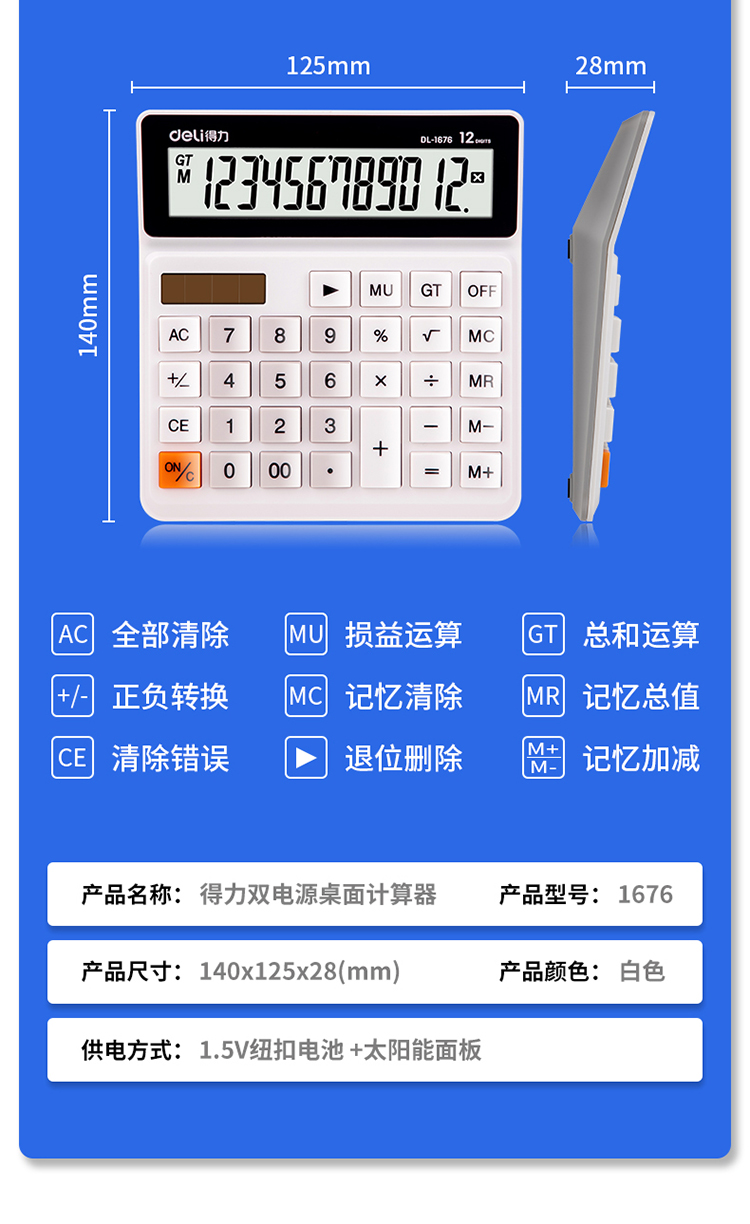 商品名称:得力1676桌面计算器(白)