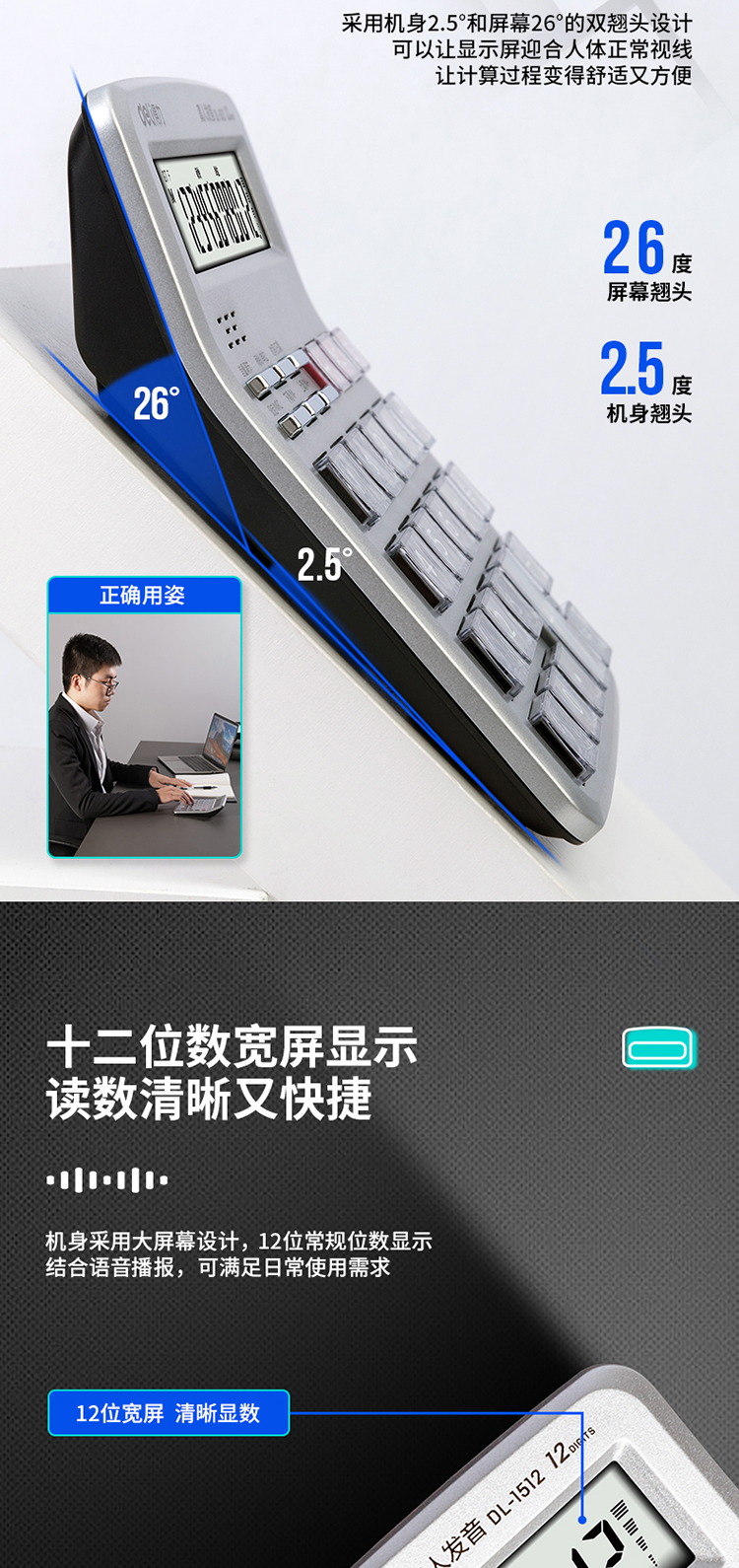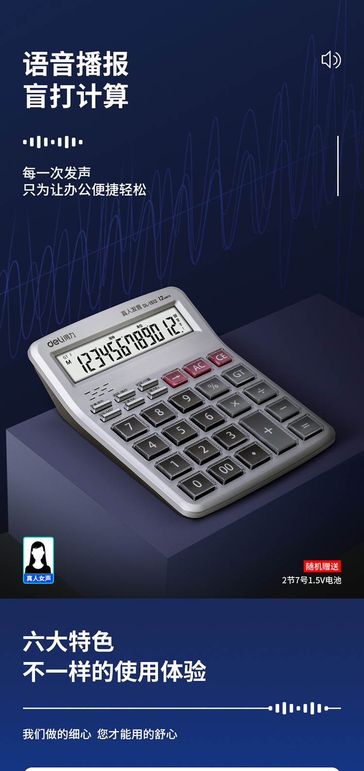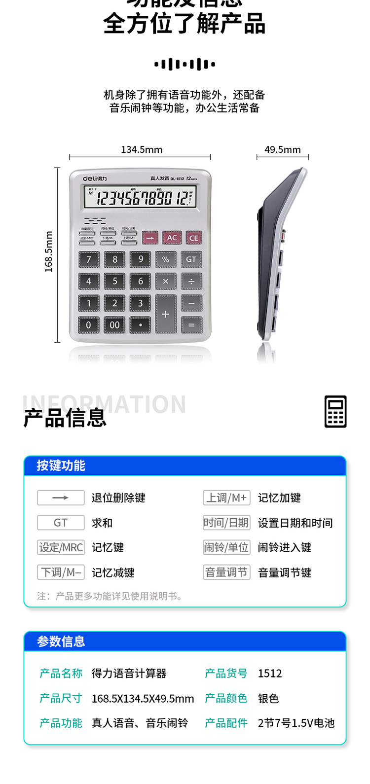商品名称:得力1512语音计算器(银)