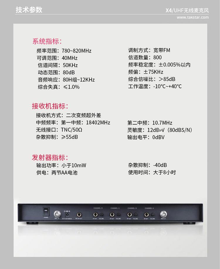 商品名称:得胜X4-TD-UHF无线麦克风手持发射器手持(只)