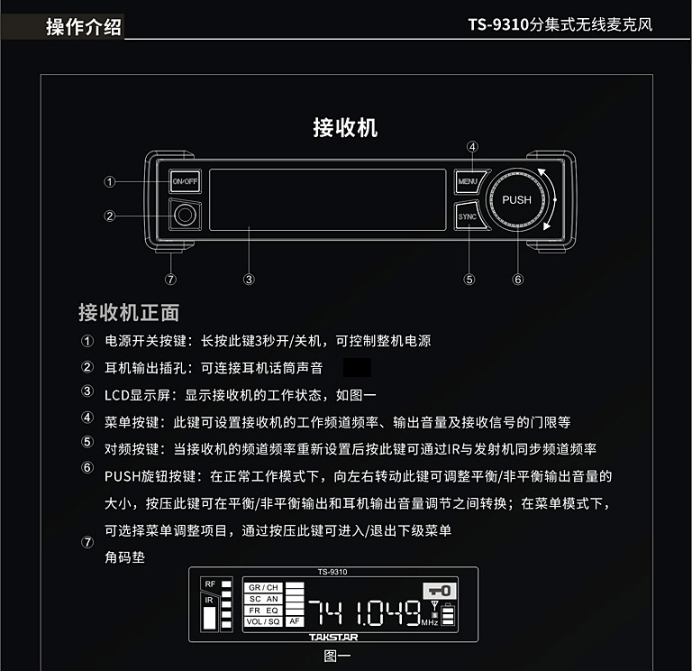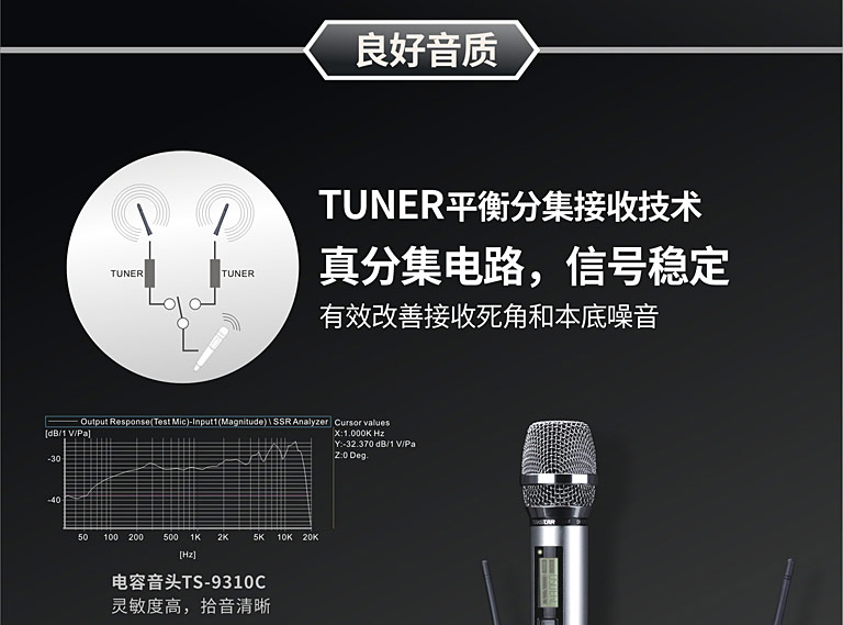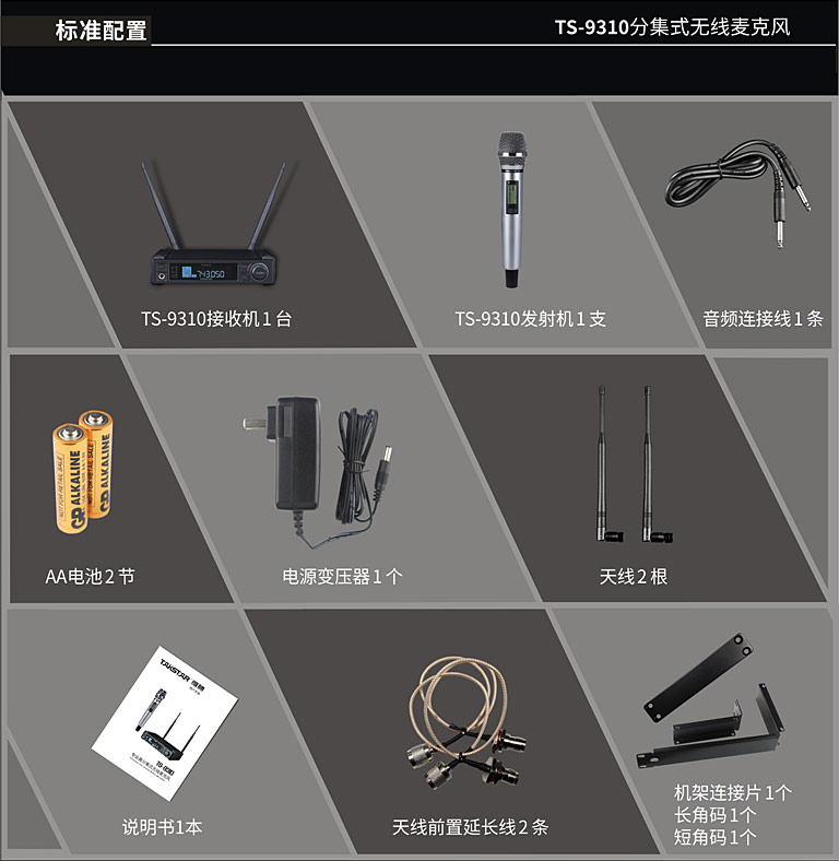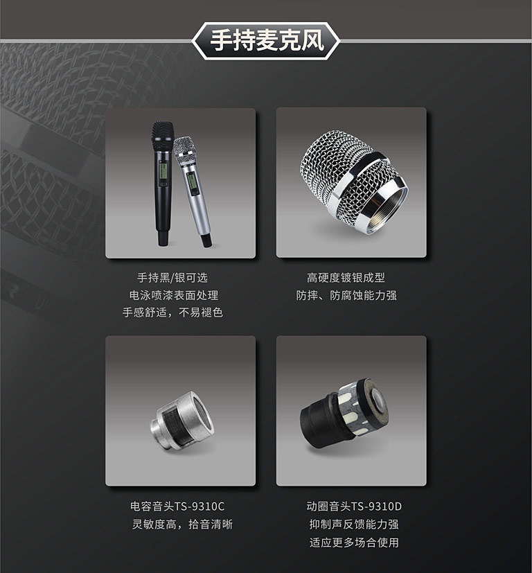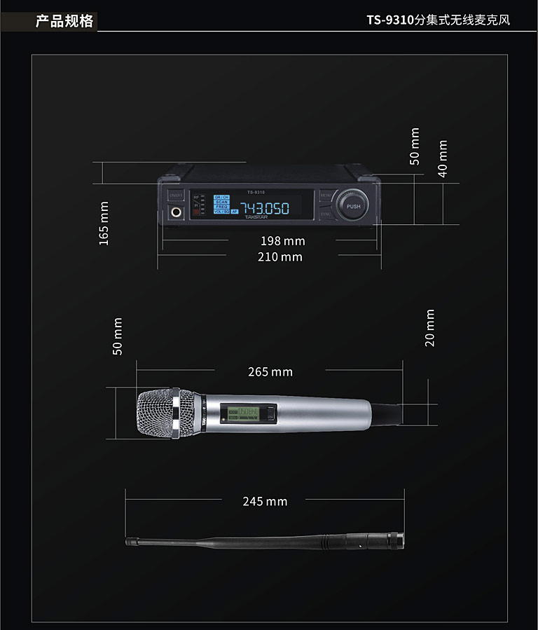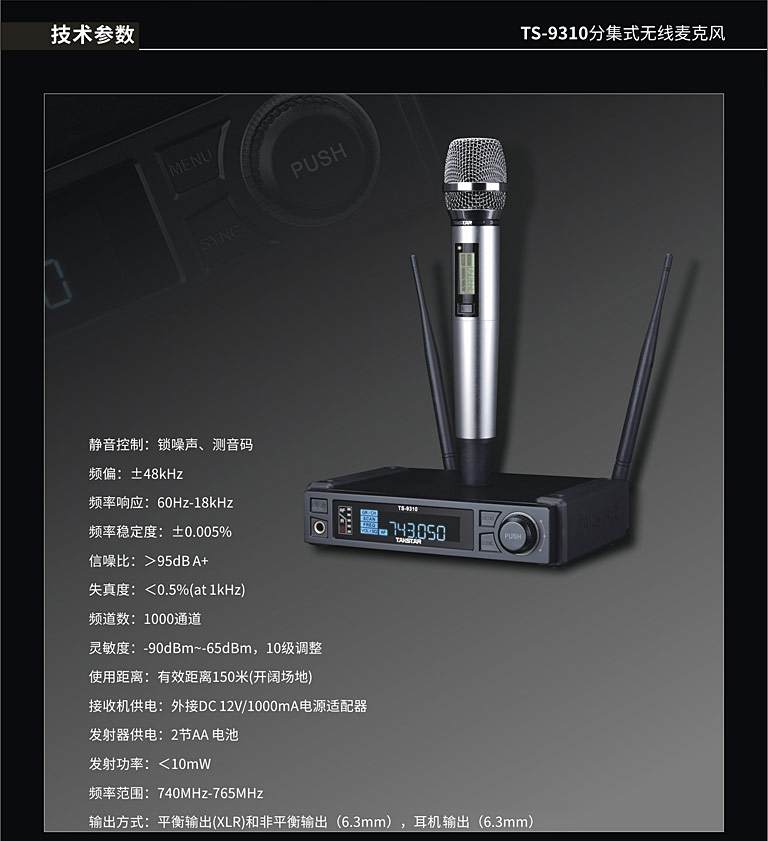 商品名称:得胜TS-9310分级式无线麦克风黑色(台)