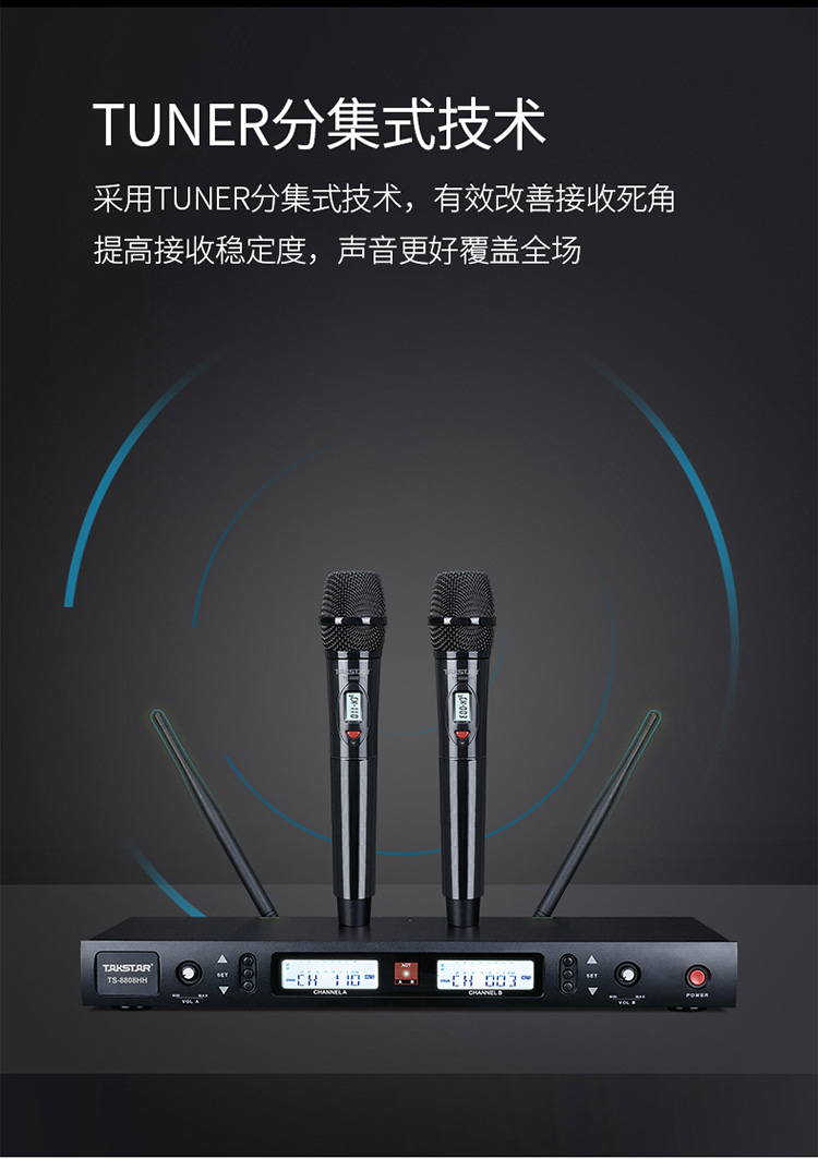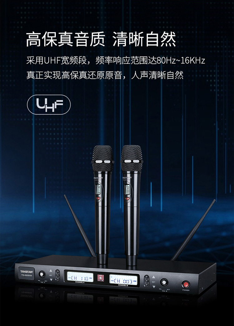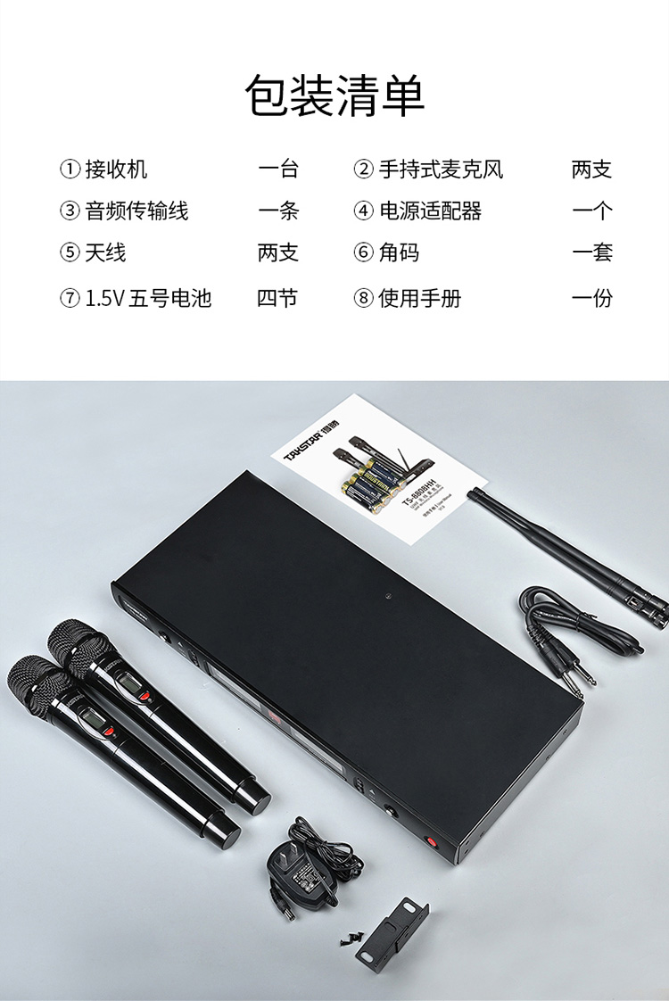 商品名称:得胜TS-8808一拖二无线话筒(个)
