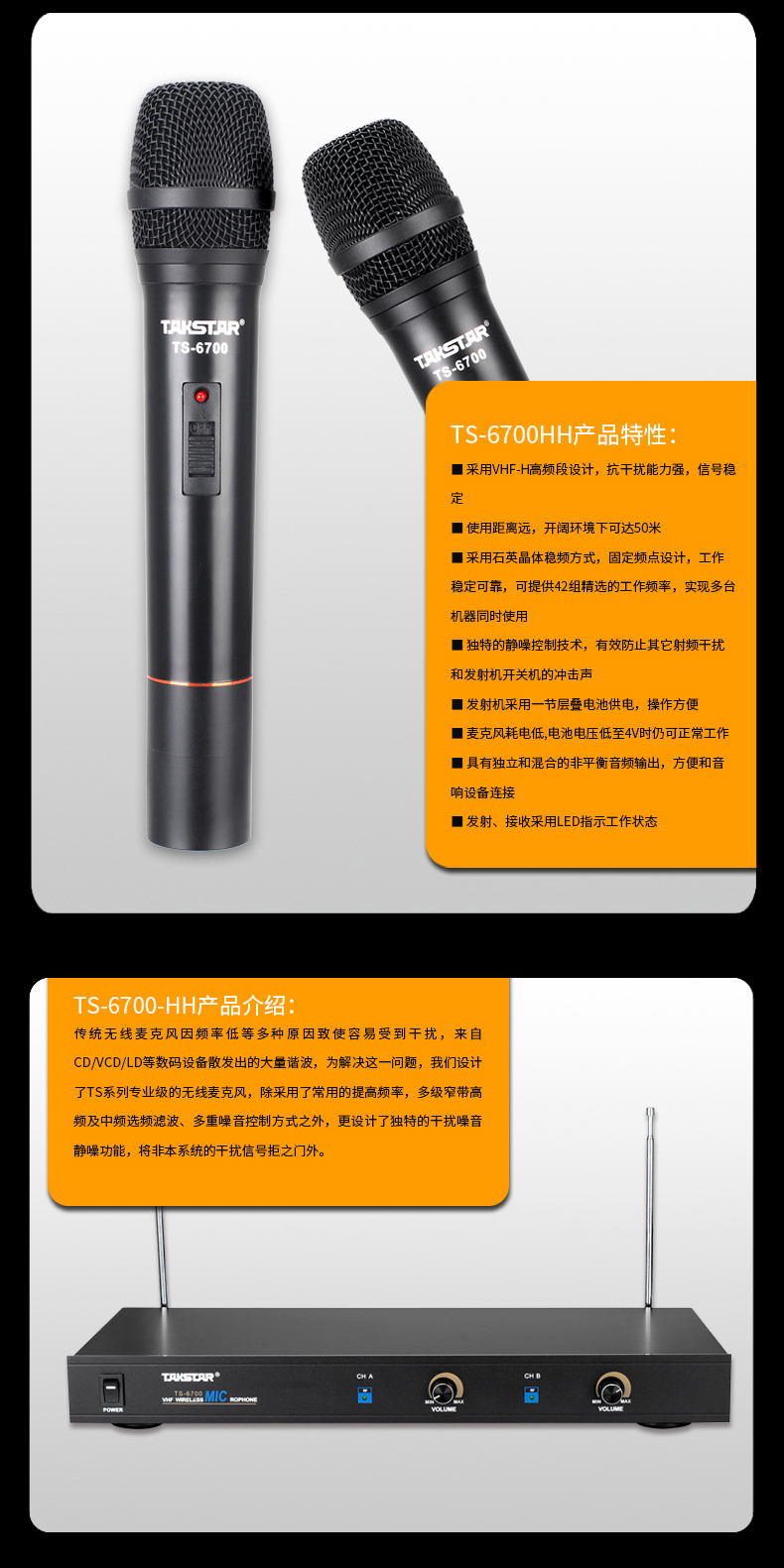 商品名称:得胜TS-6700HH无线麦克风(台)