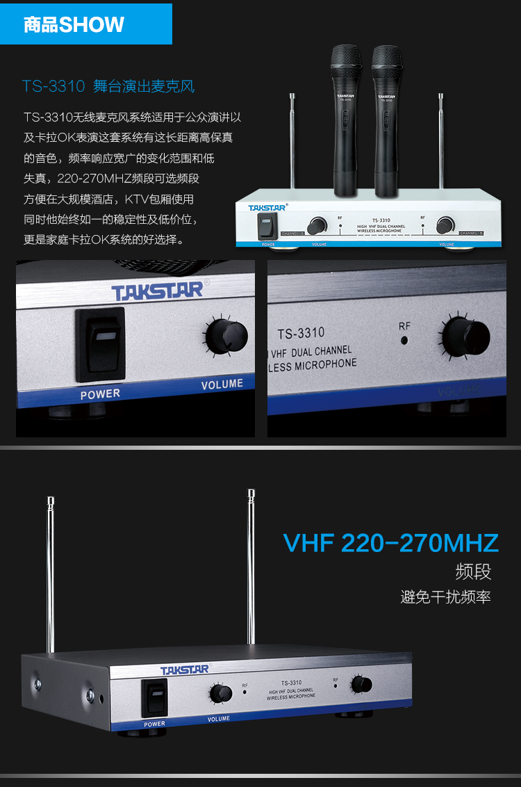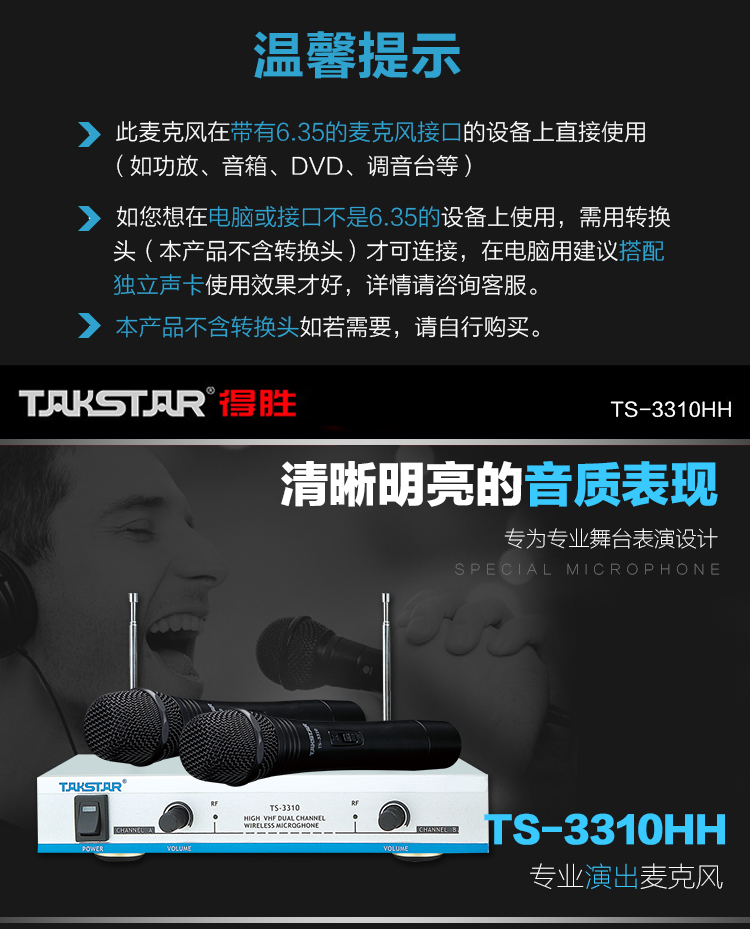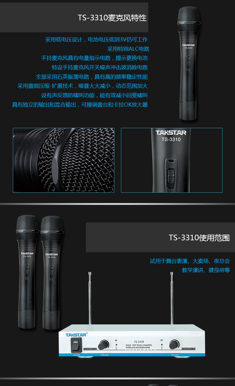 商品名称:得胜TS-3310HH手持无线麦克风一拖二(套)