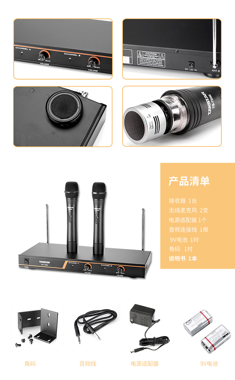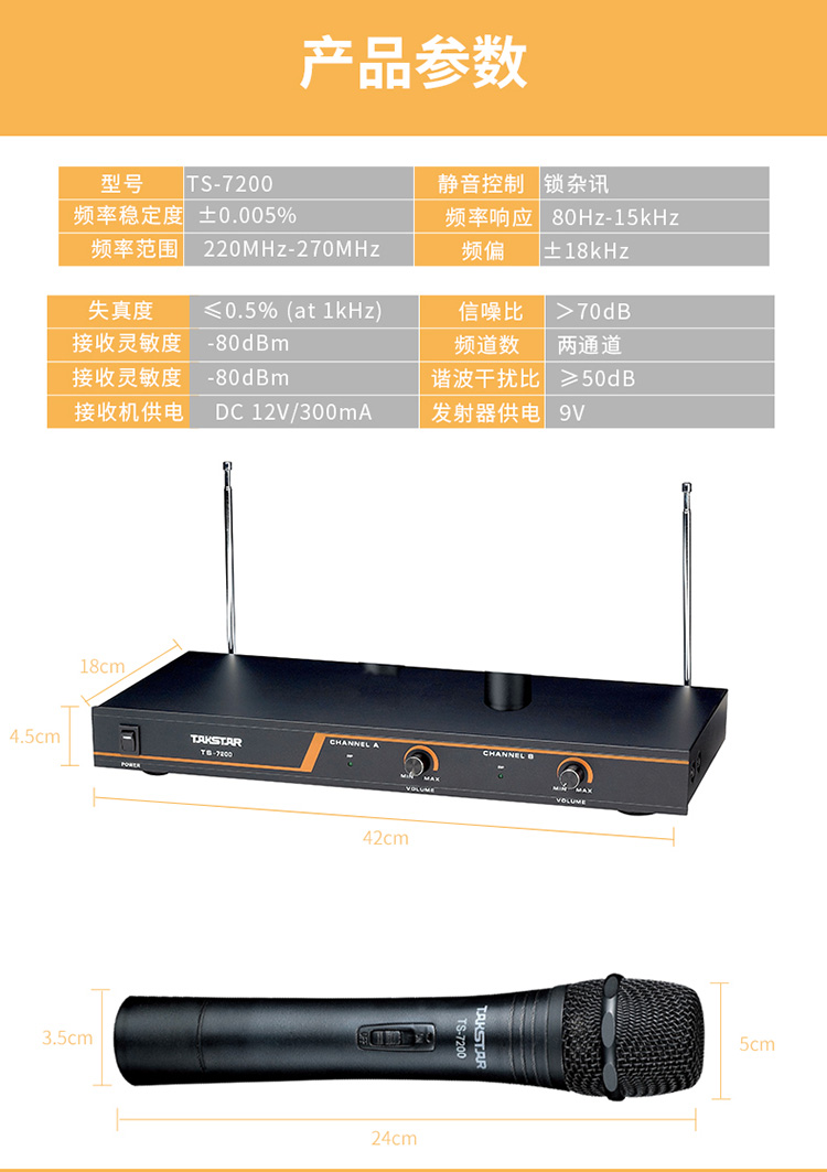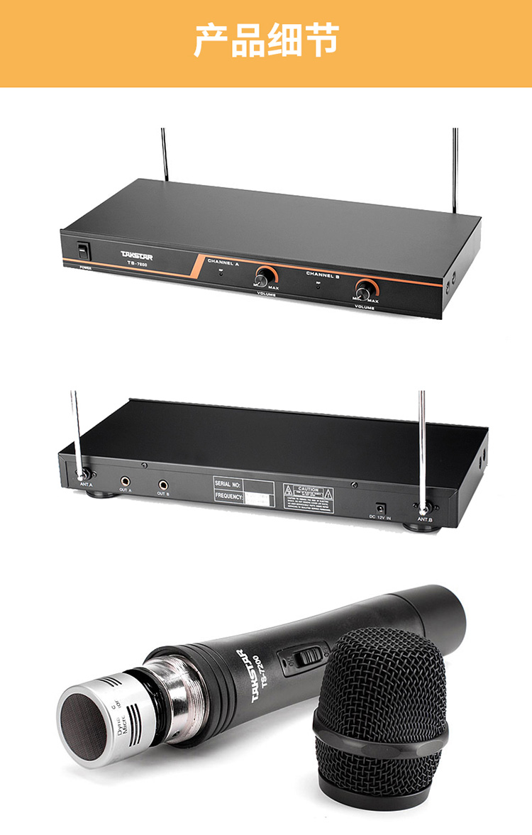 商品名称:得胜TS-7200 无线一拖二手持麦克风