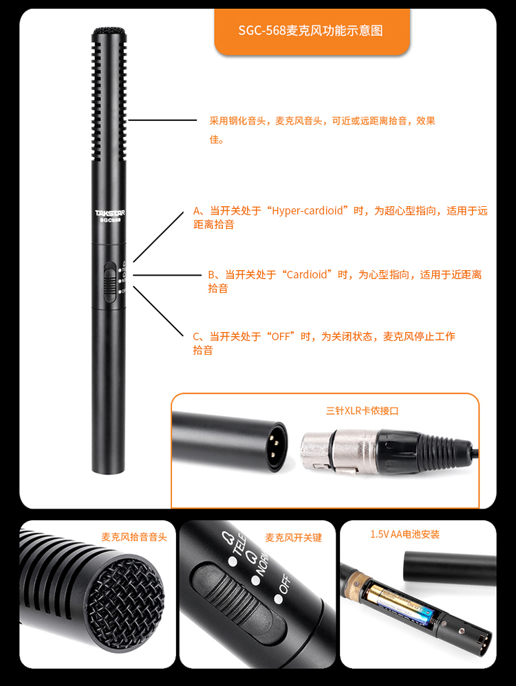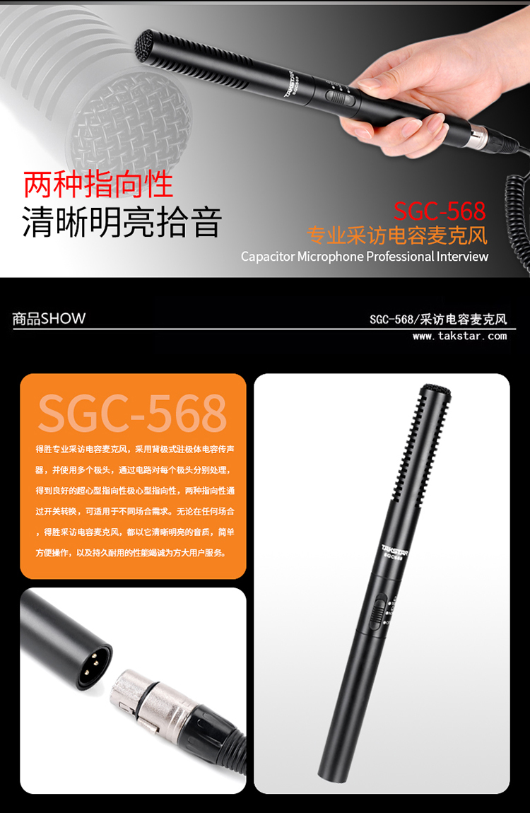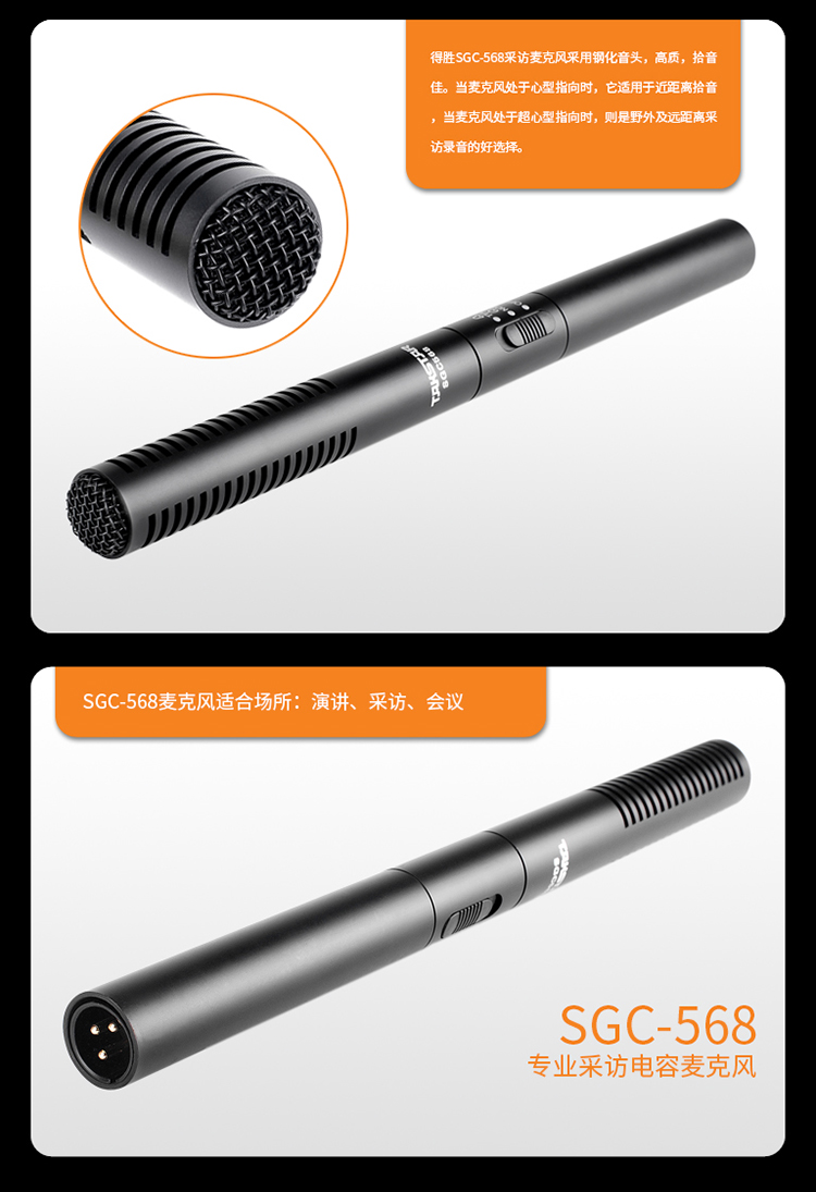 商品名称:得胜SGC-568新闻采访话筒(个)