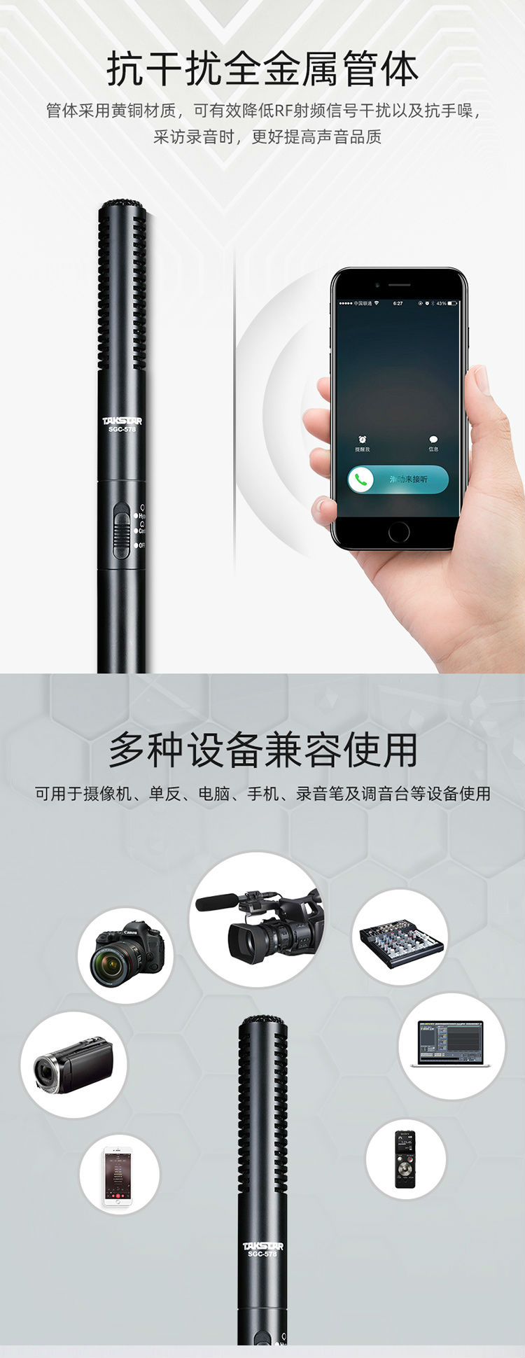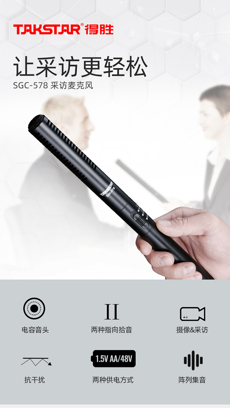 商品名称:得胜SGC-578新闻采访话筒(个)